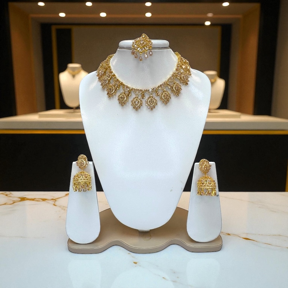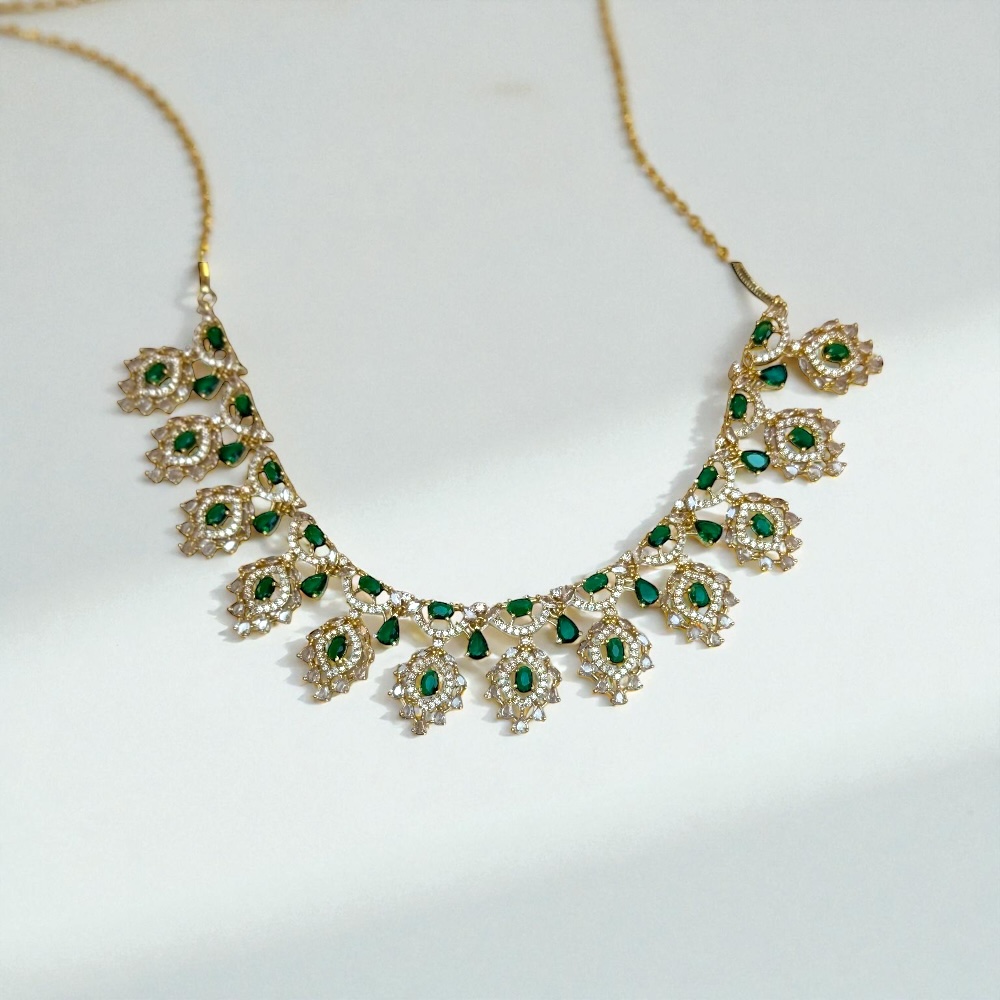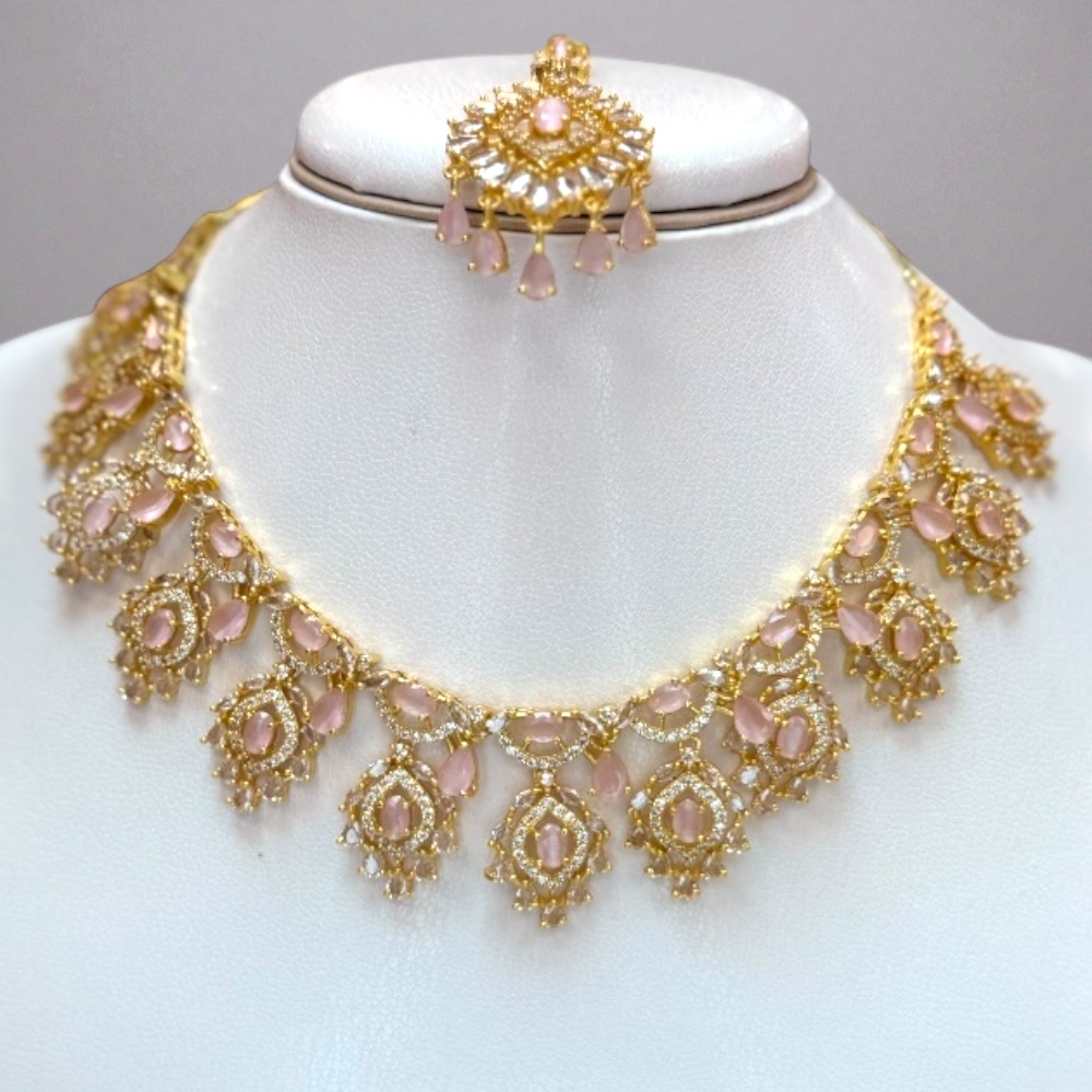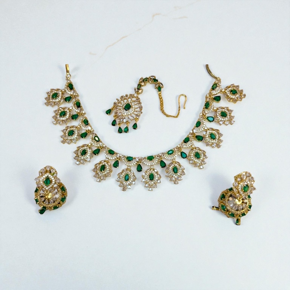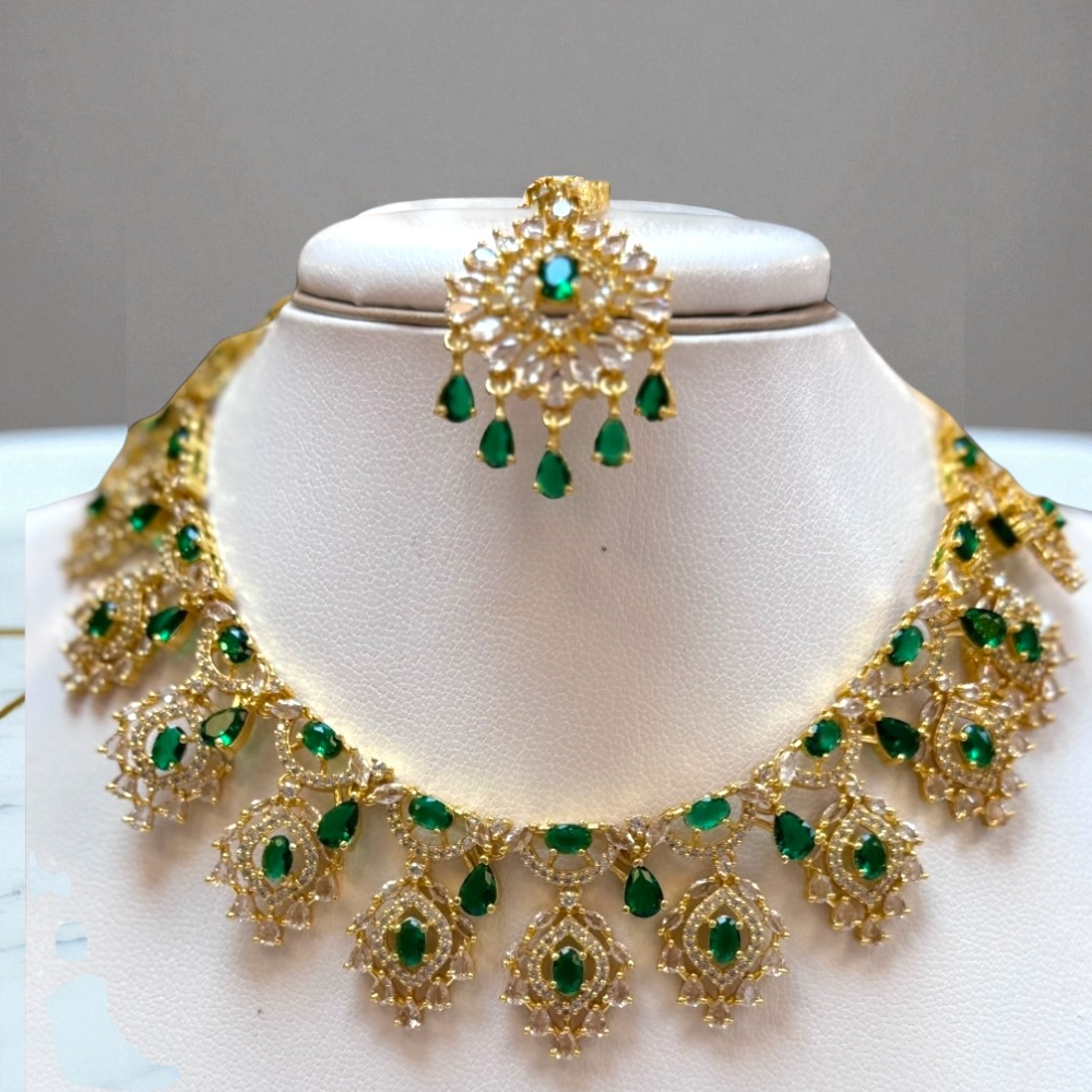 • Necklace: Adjustable, intricately designed with premium American diamonds