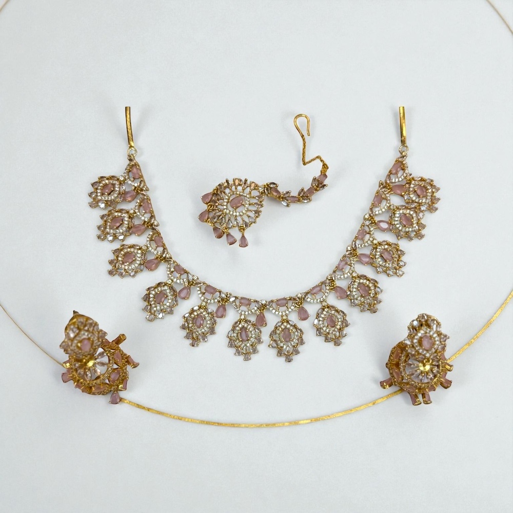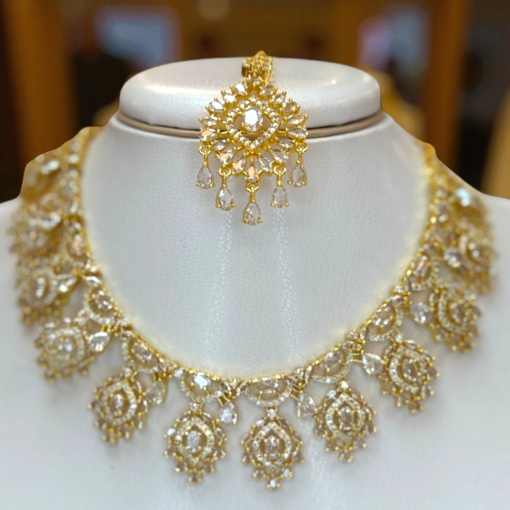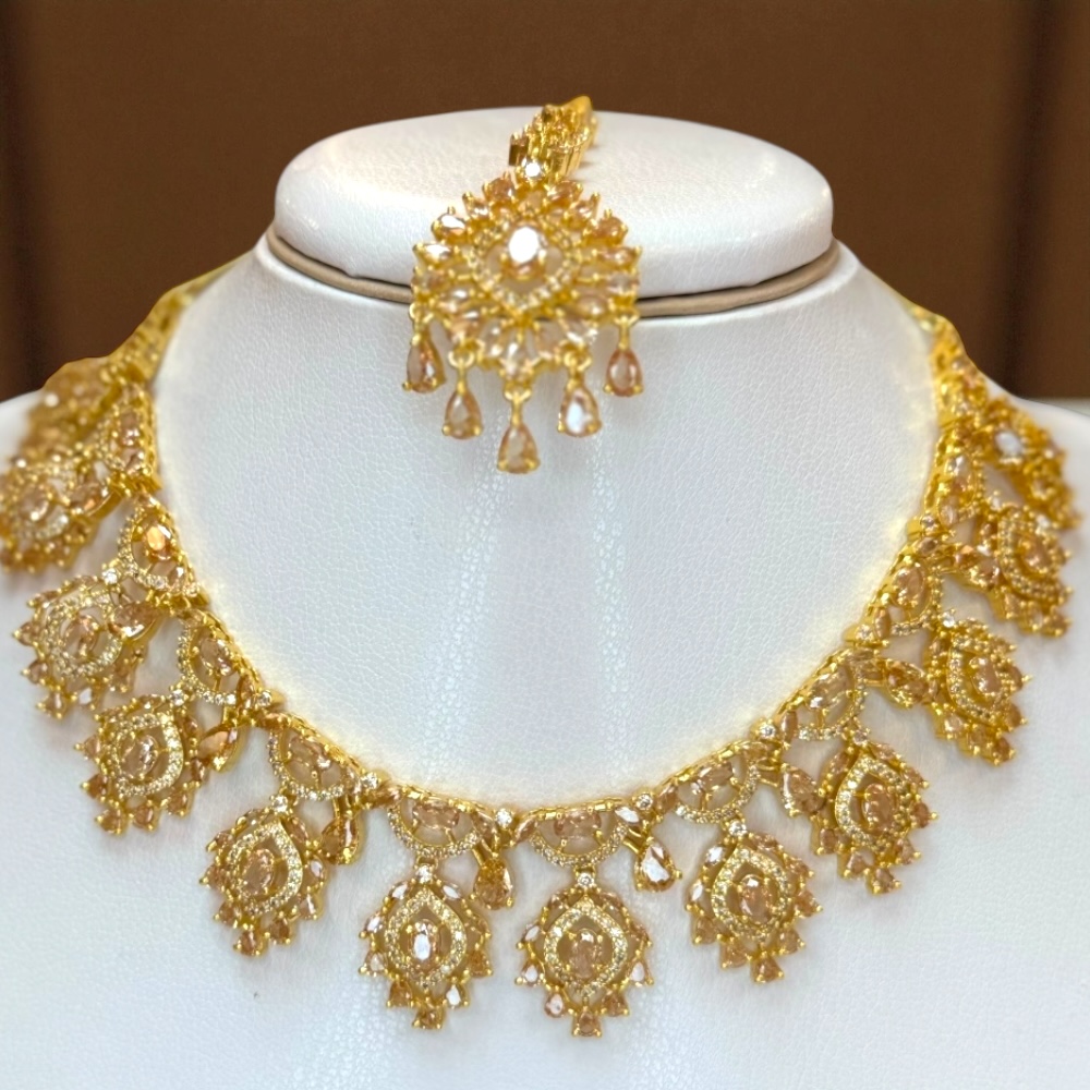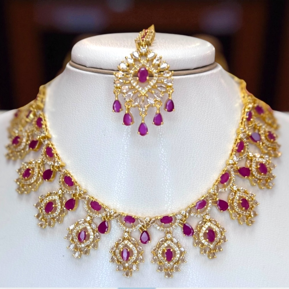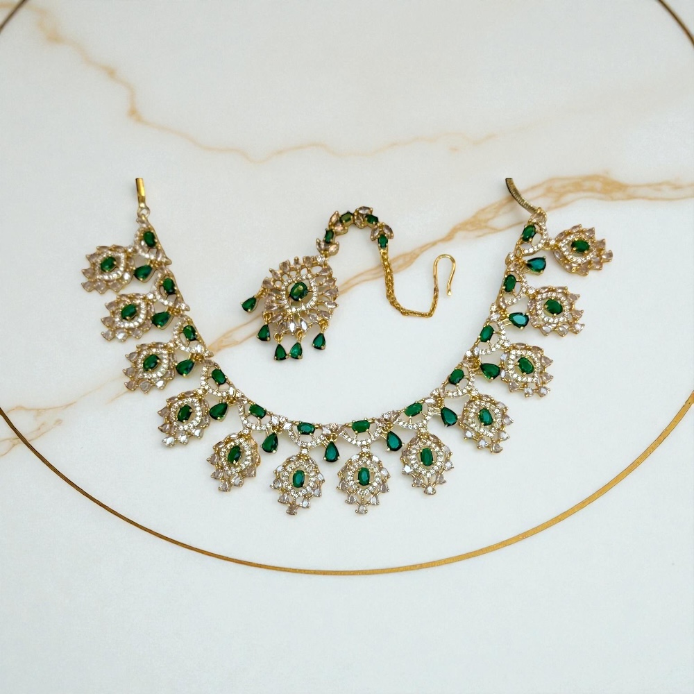 • Necklace: Adjustable, intricately designed with premium American diamonds