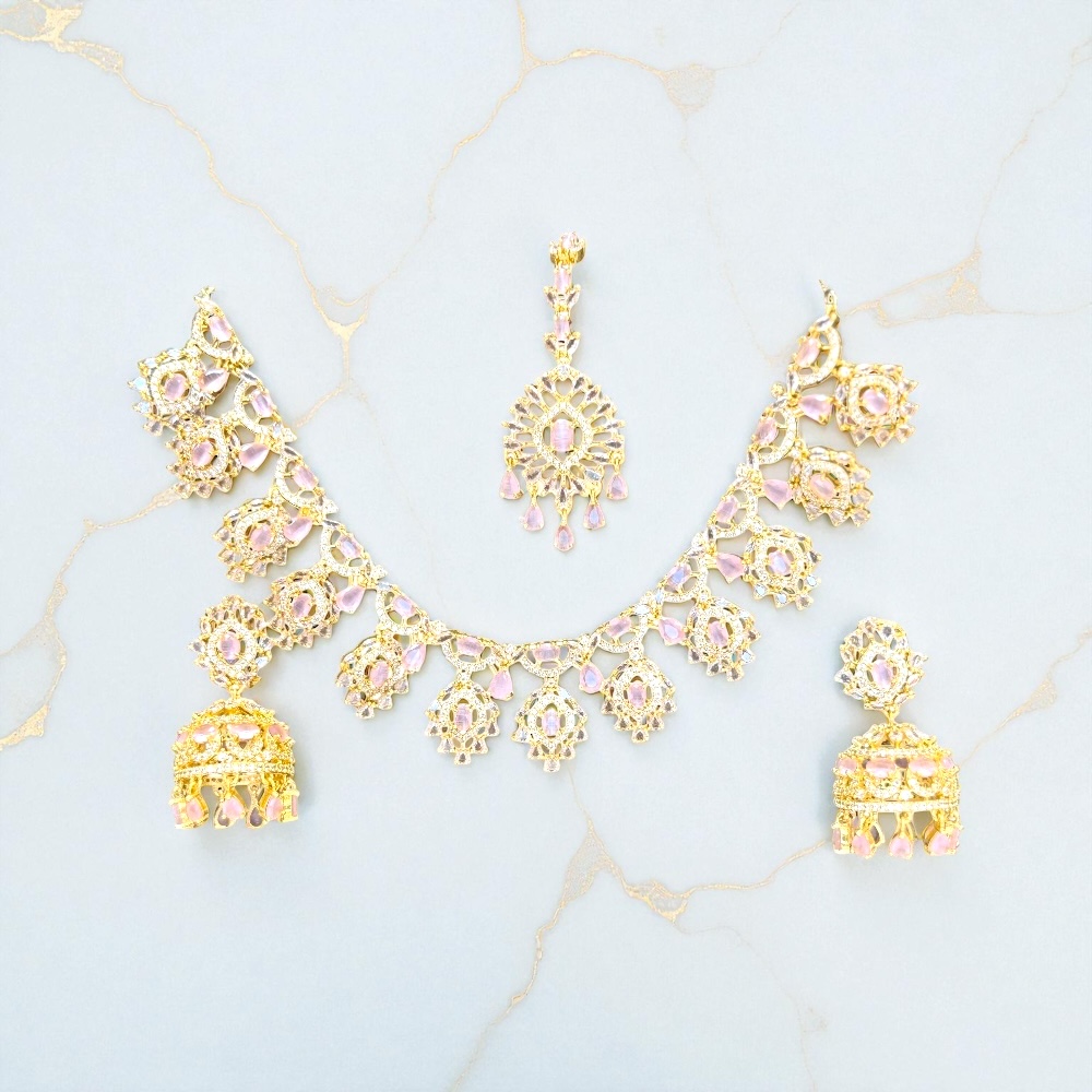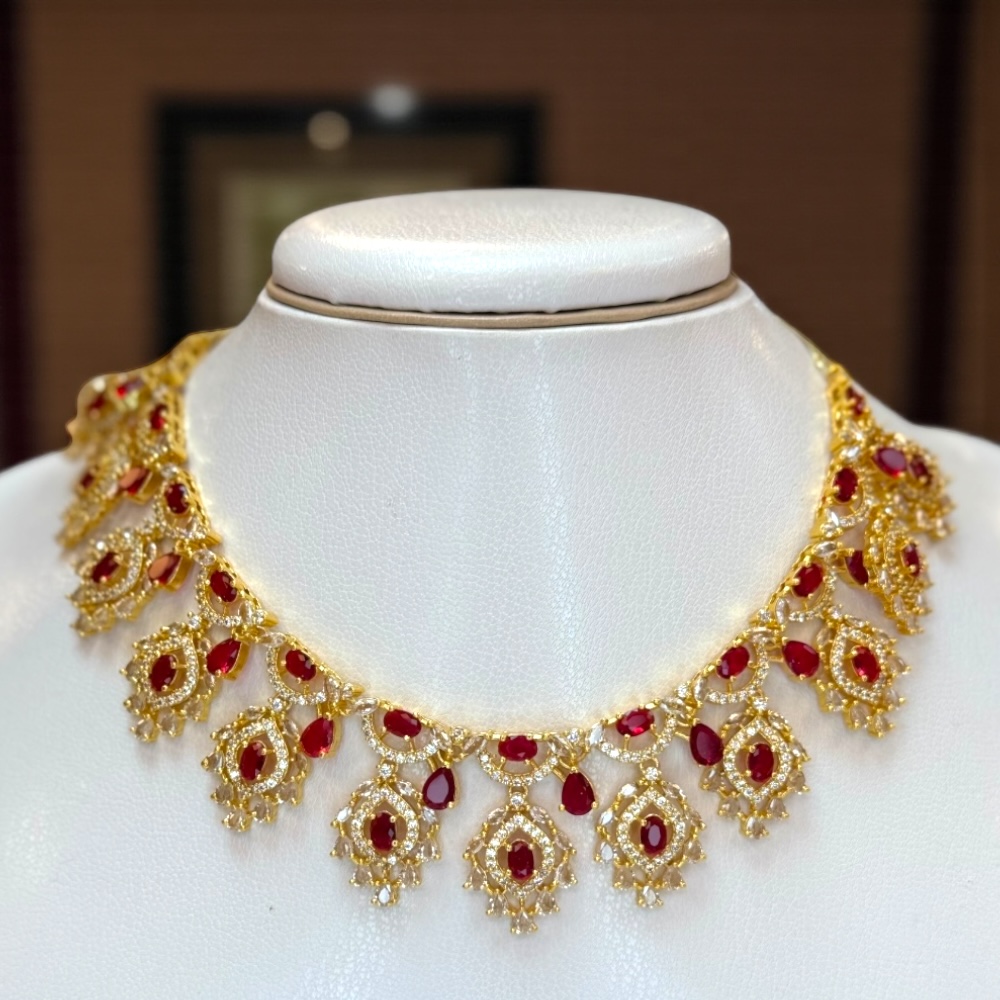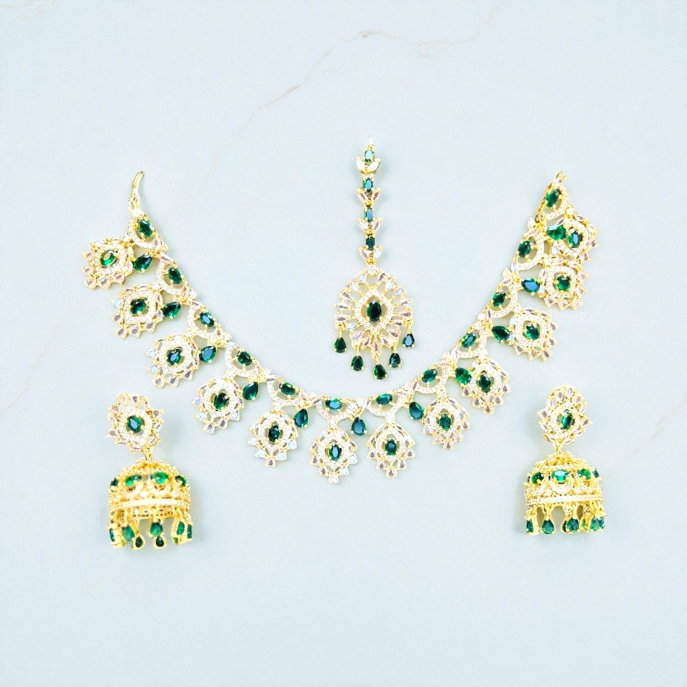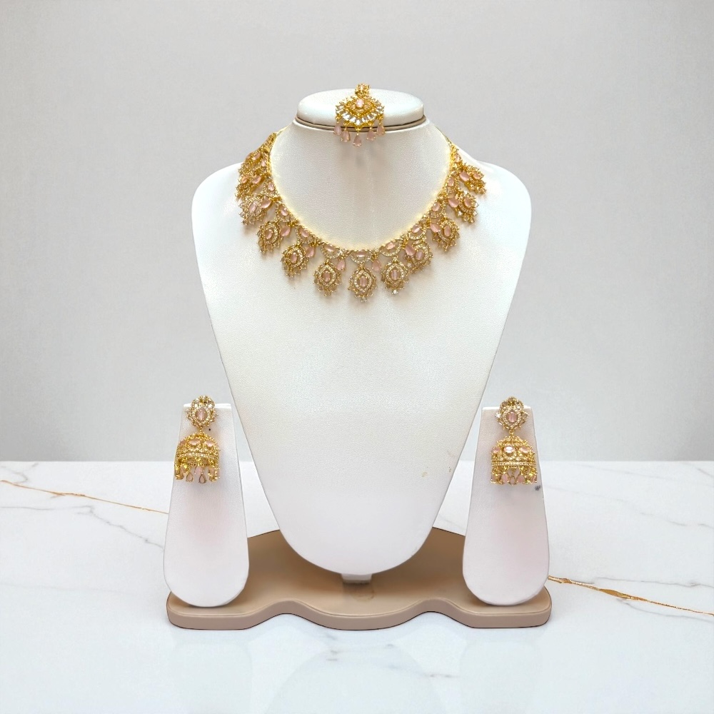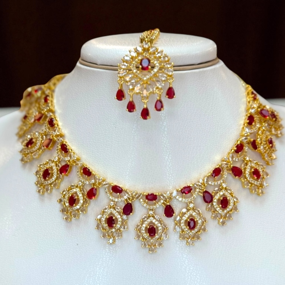 • Necklace: Adjustable, intricately designed with premium American diamonds