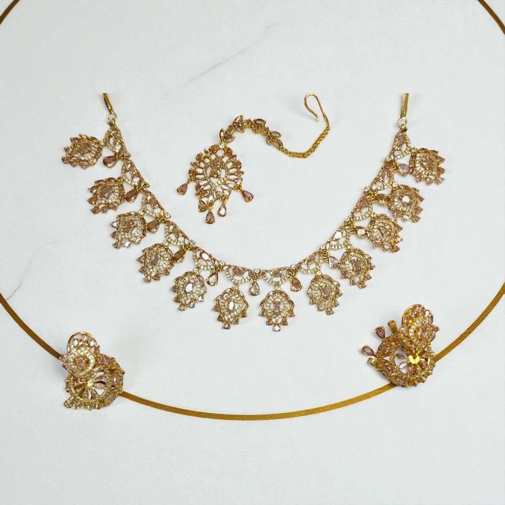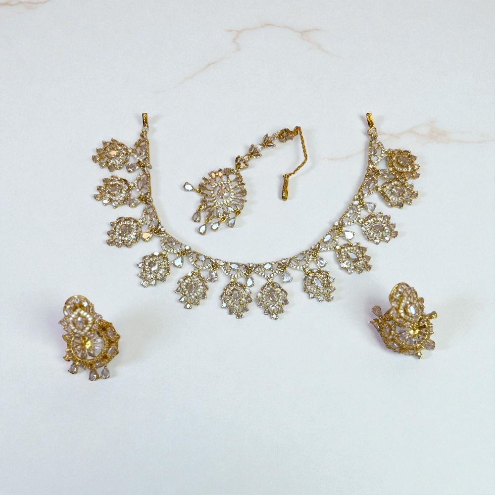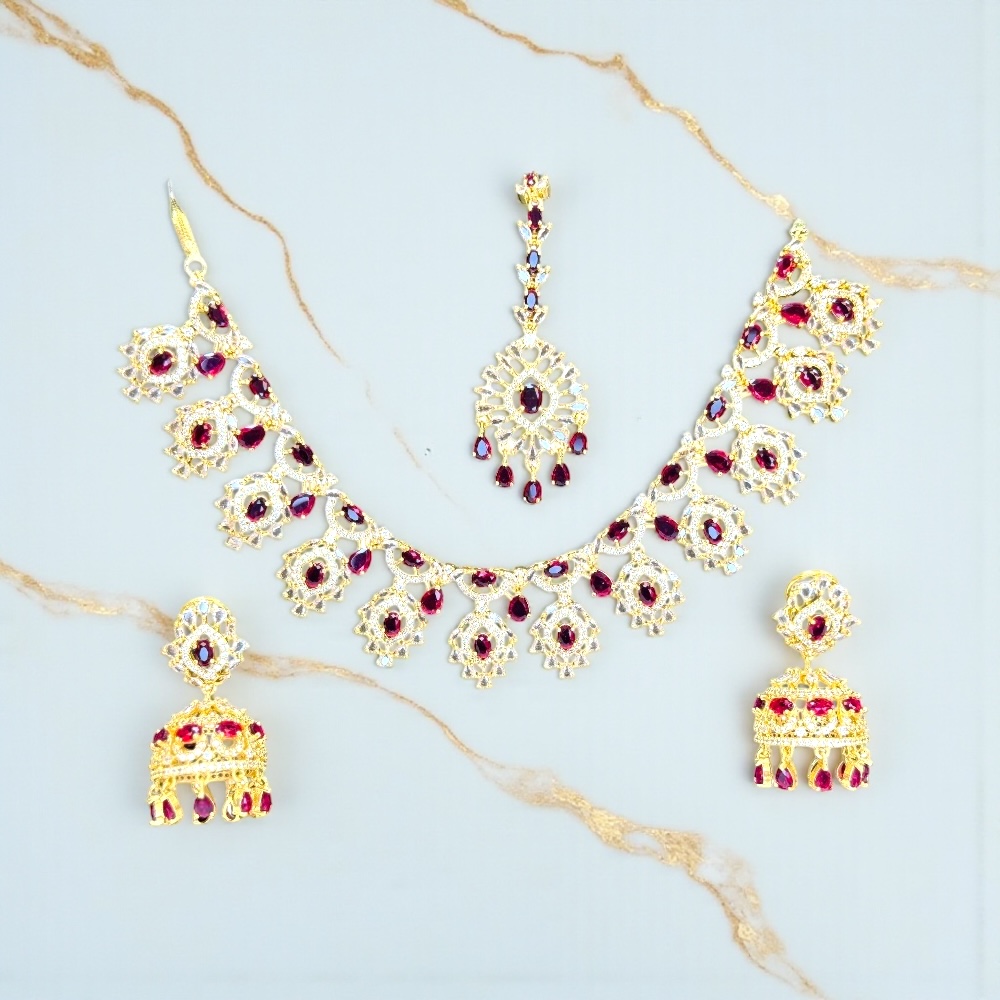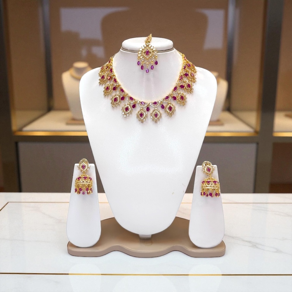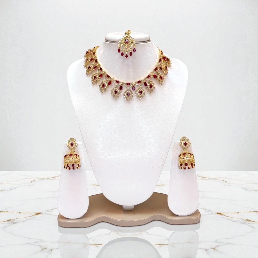 • Necklace: Adjustable, intricately designed with premium American diamonds
