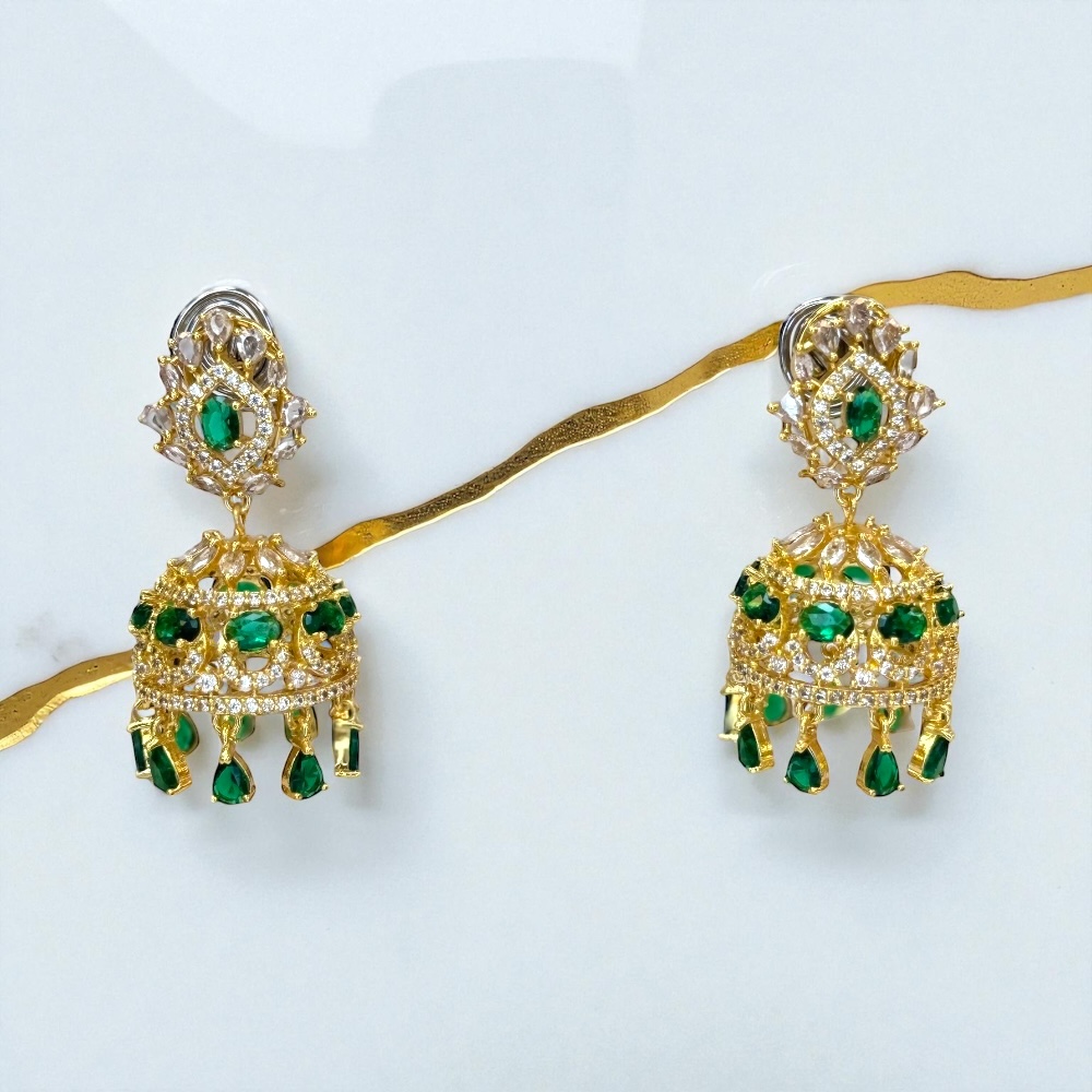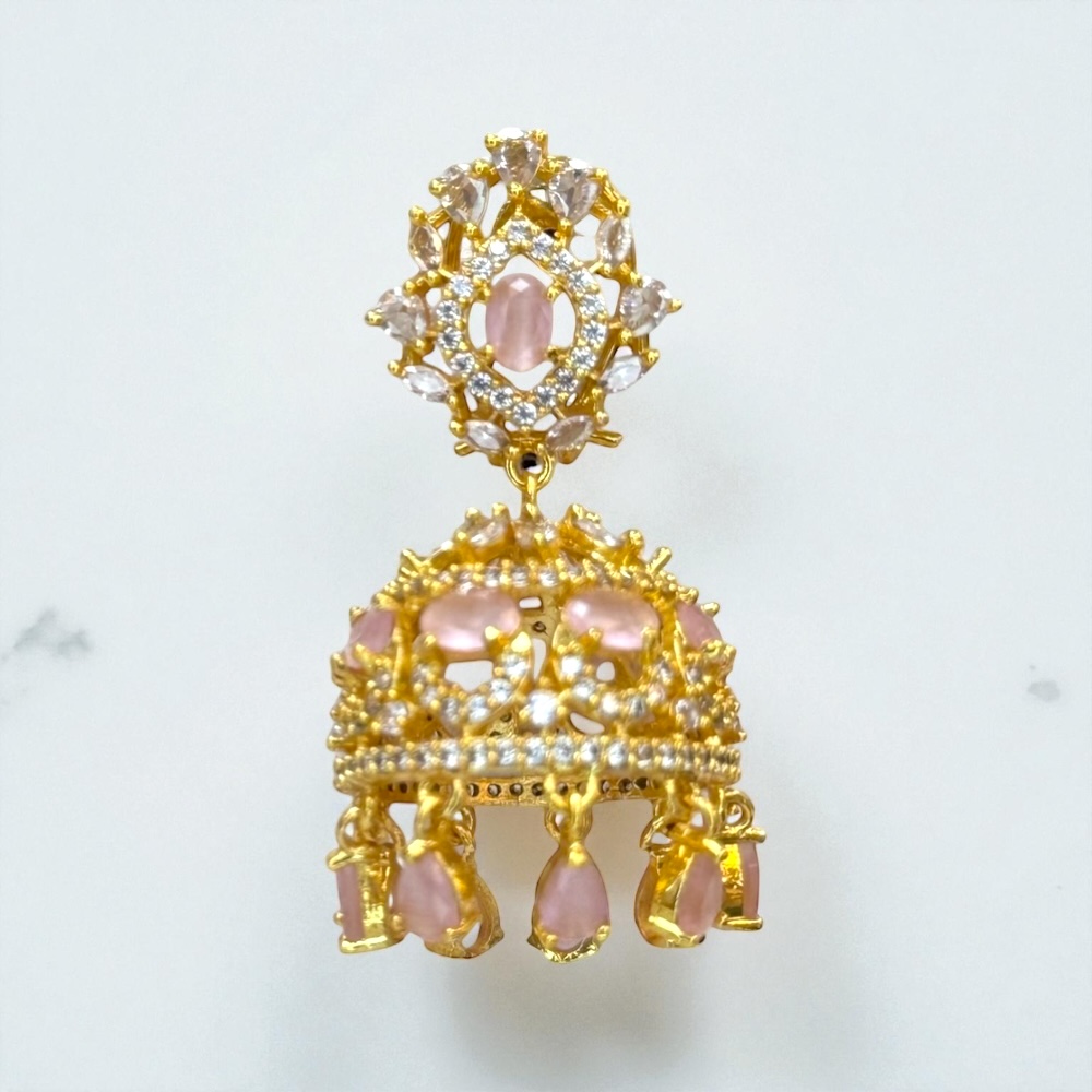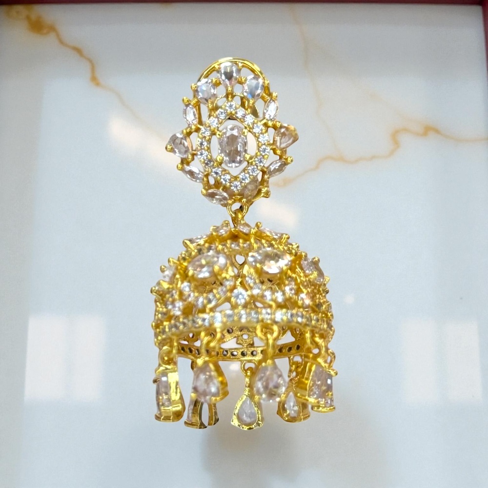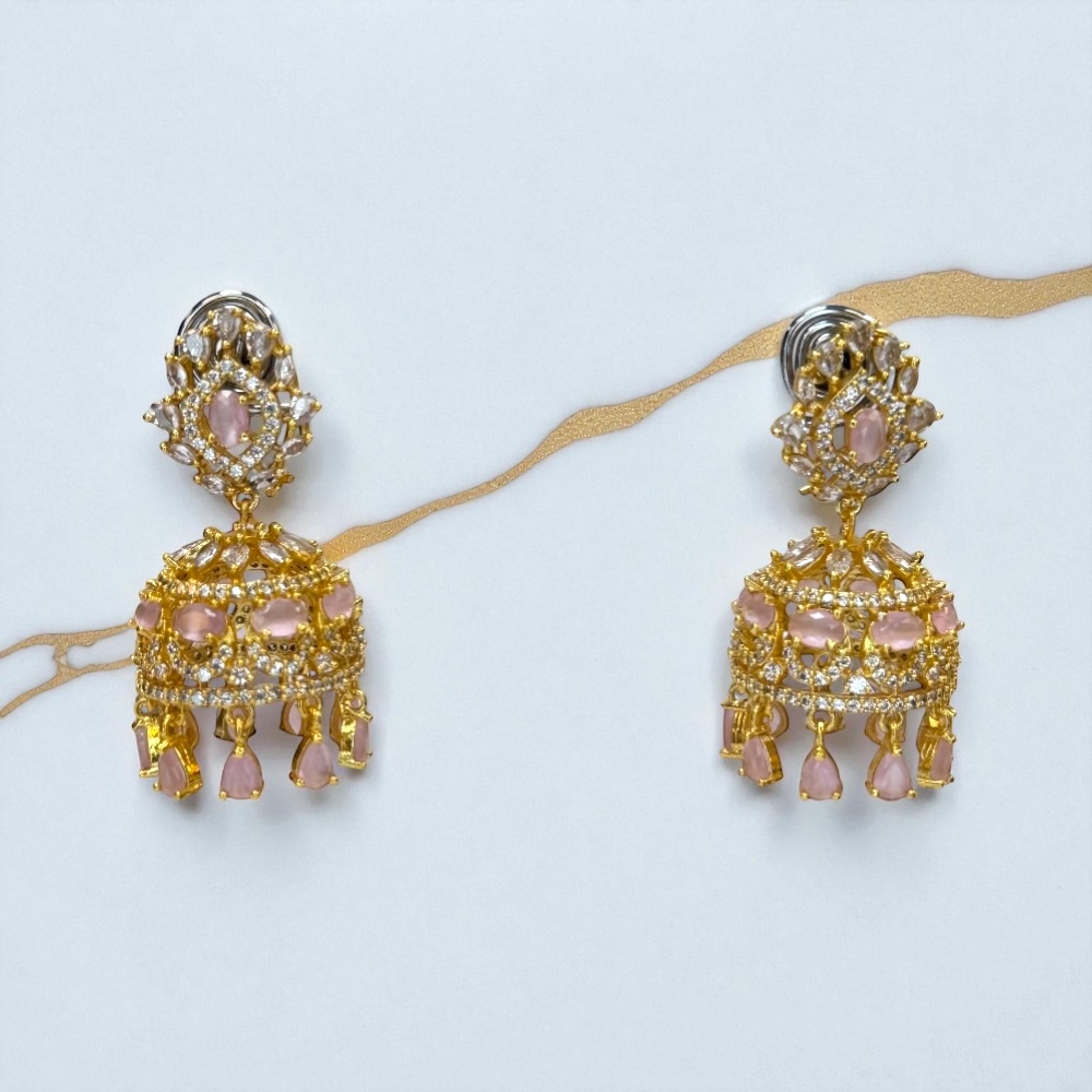 • Jhumki Earrings: Classic traditional design with push-back closure