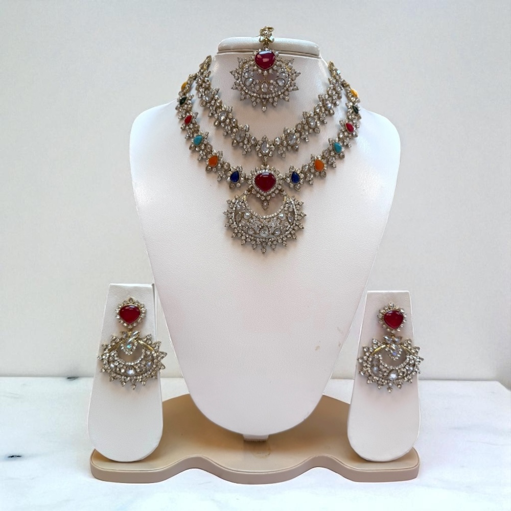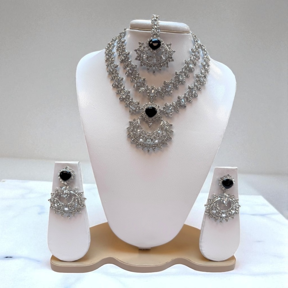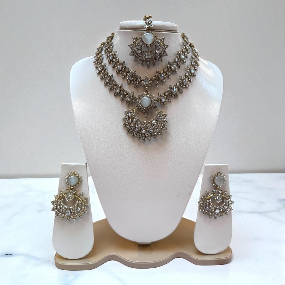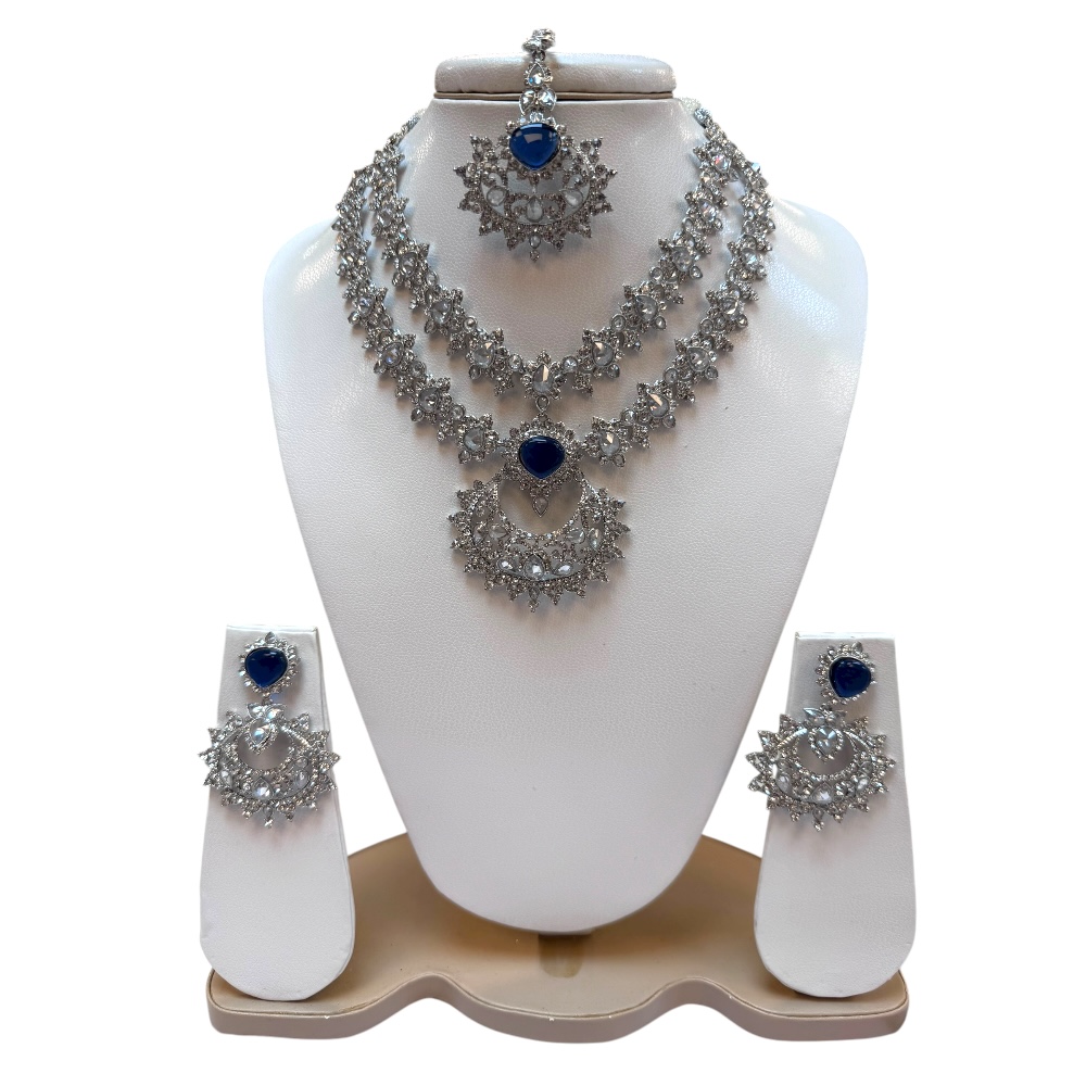 Bridal Jewellery Set – Double Layer Necklace, Earrings & Tikka | Crystal Wedding Gift