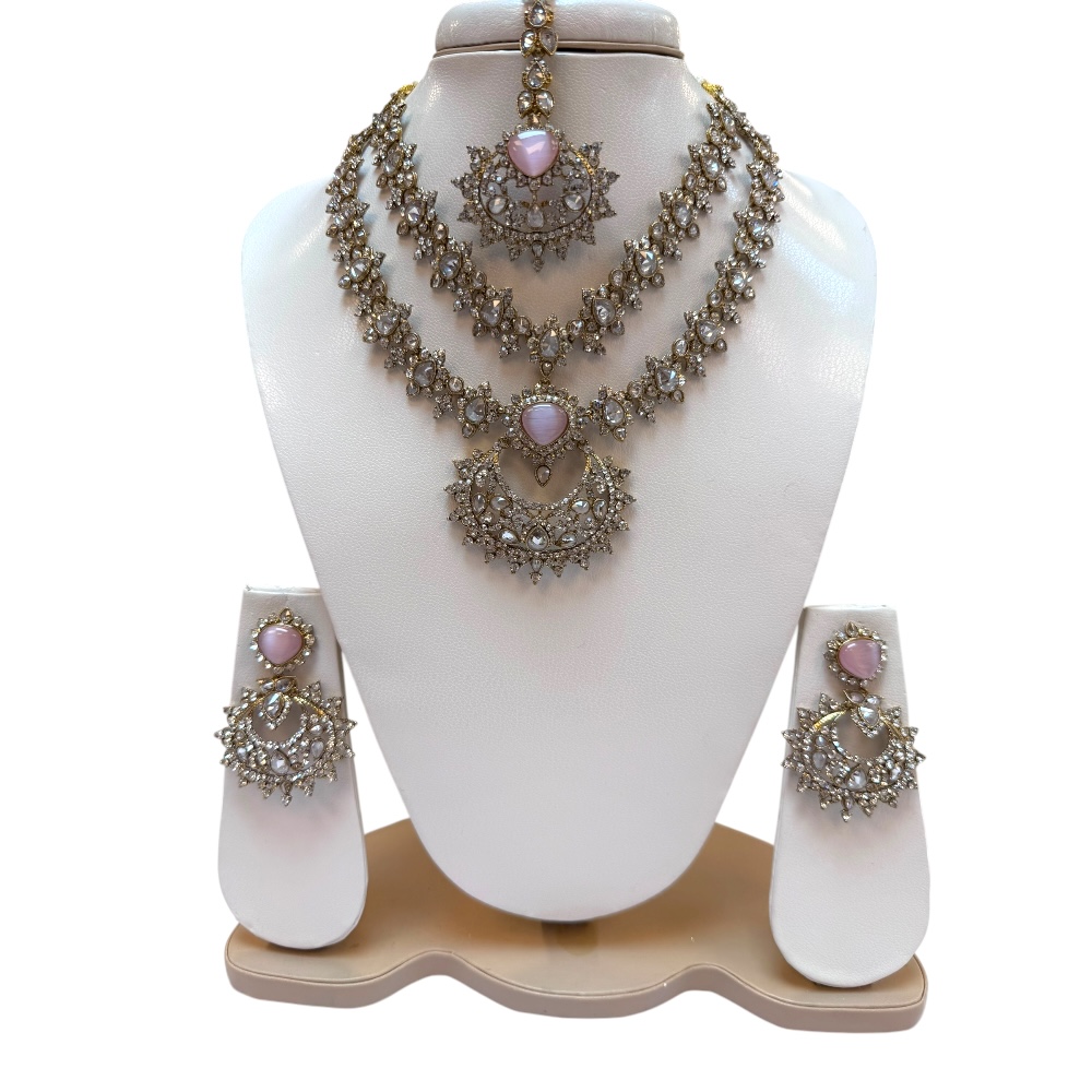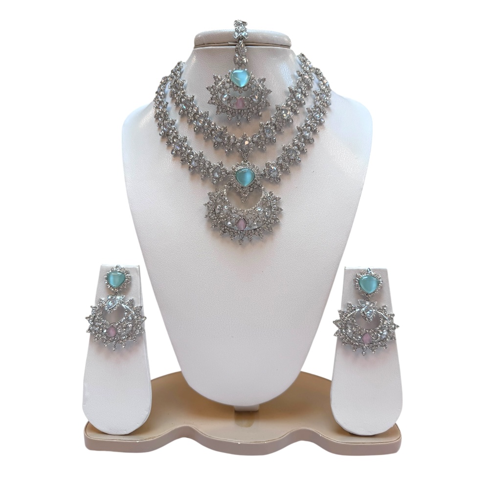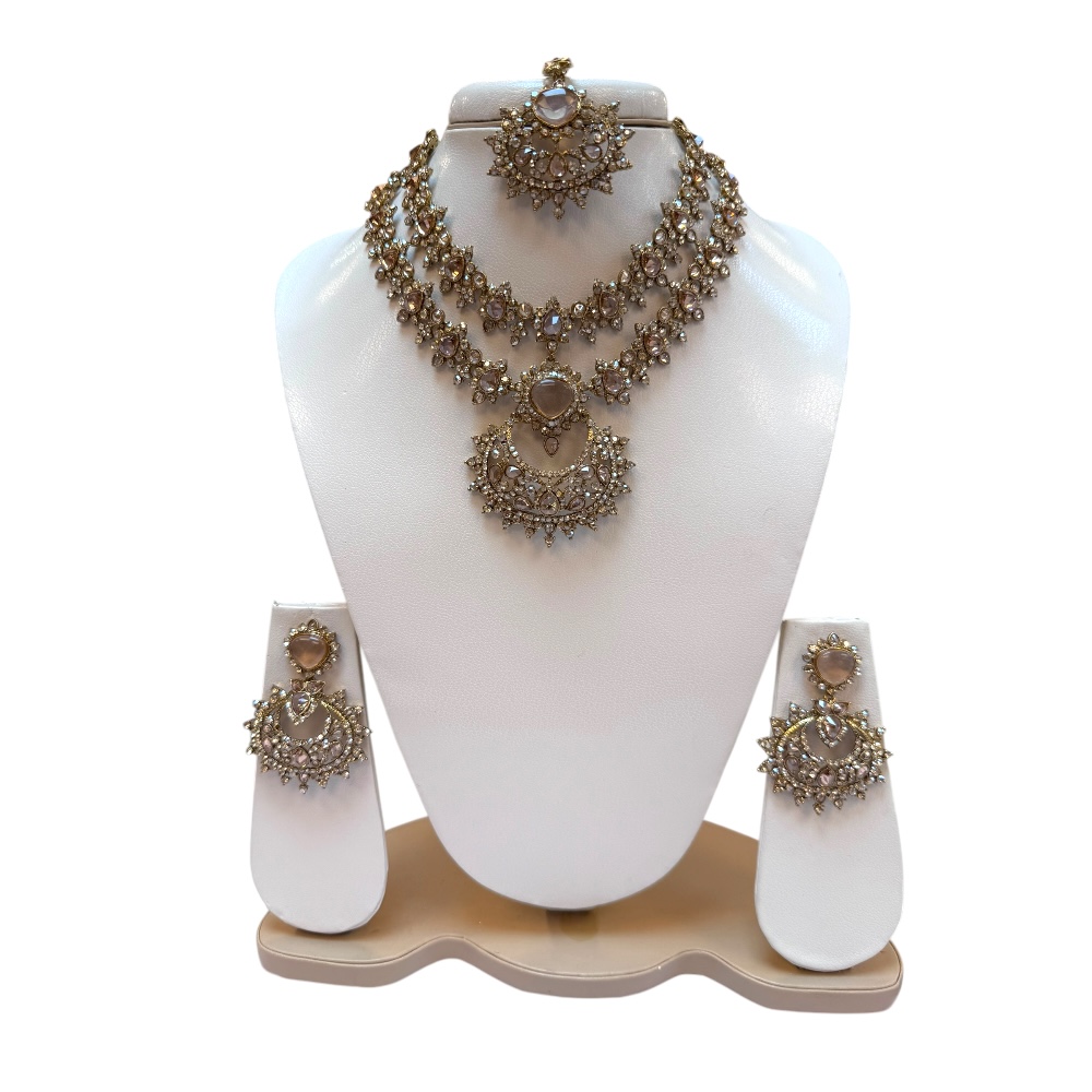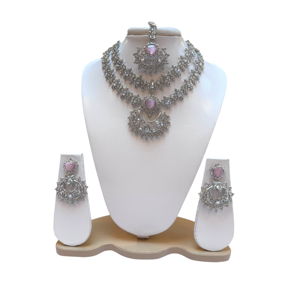 Bridal Jewellery Set – Double Layer Necklace, Earrings & Tikka | Crystal Wedding Gift