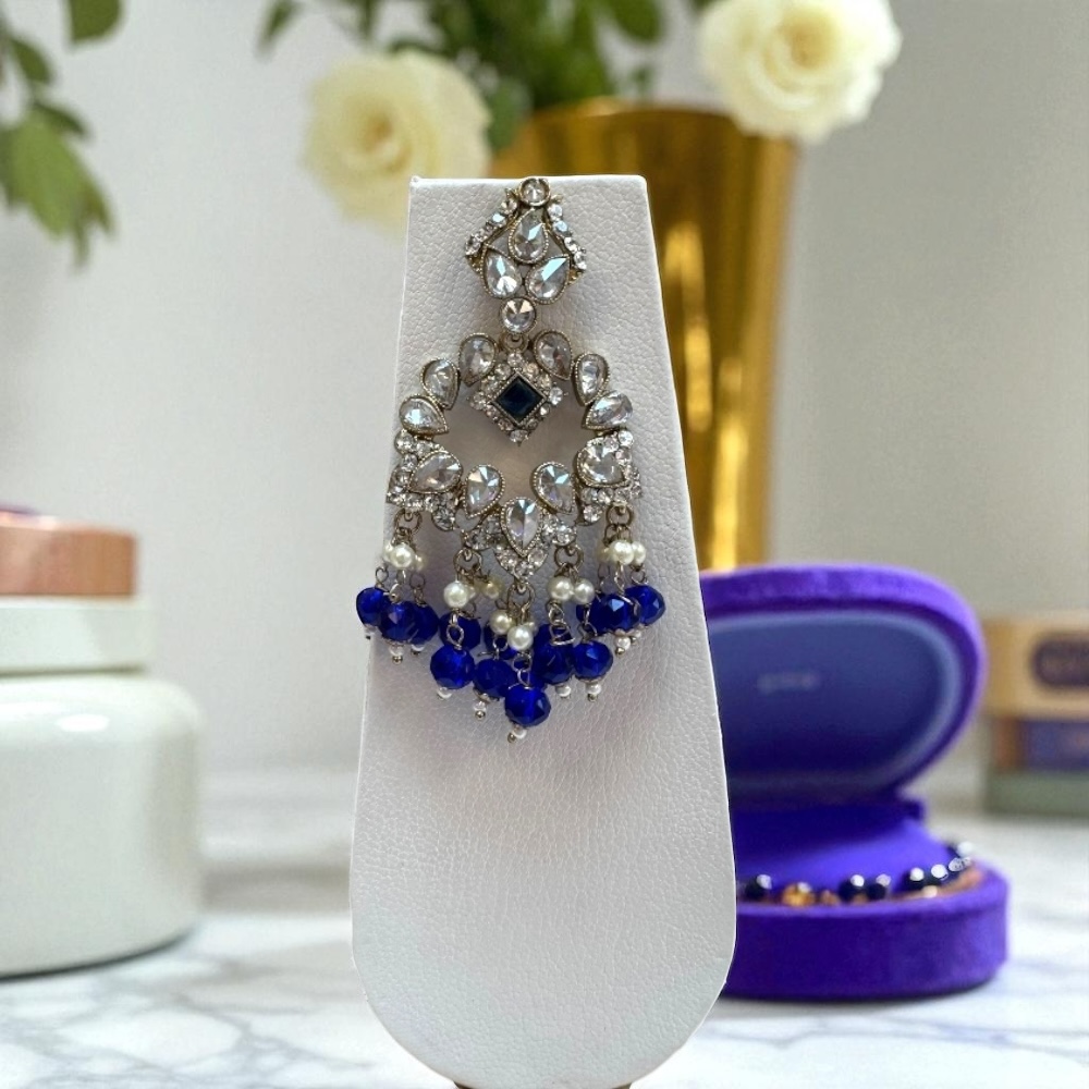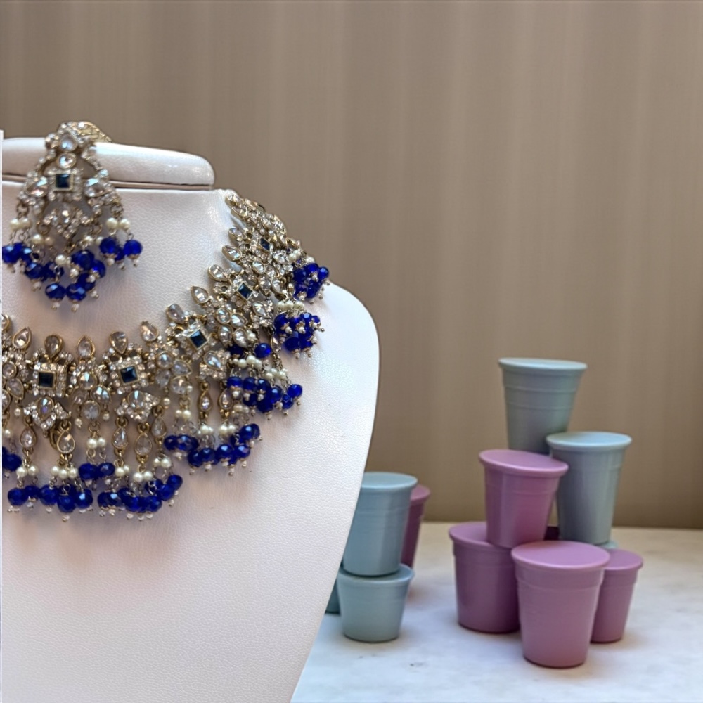 Crystal Cascade Necklace Set – Royal Blue & Gold