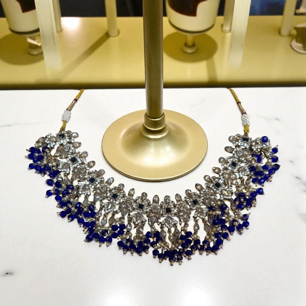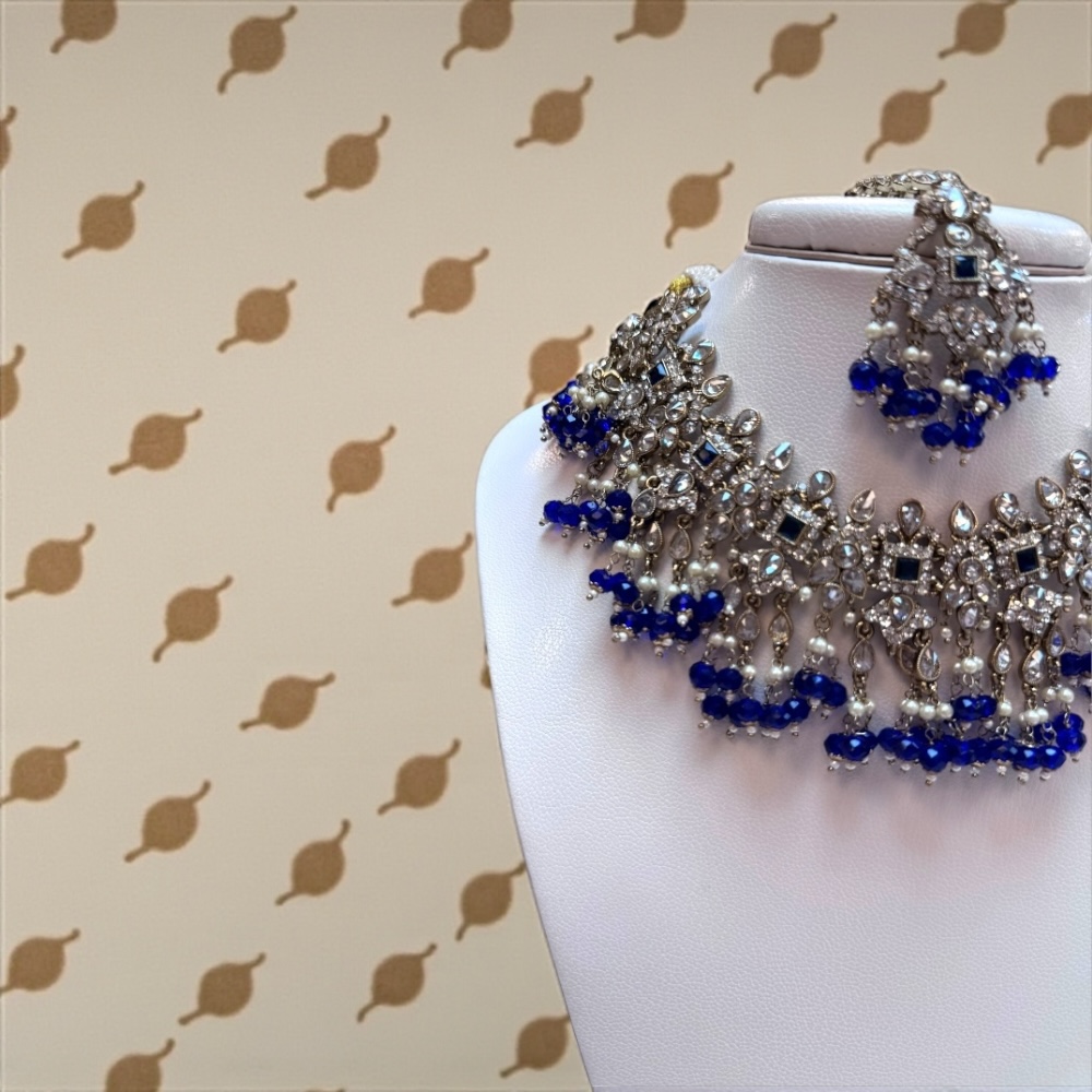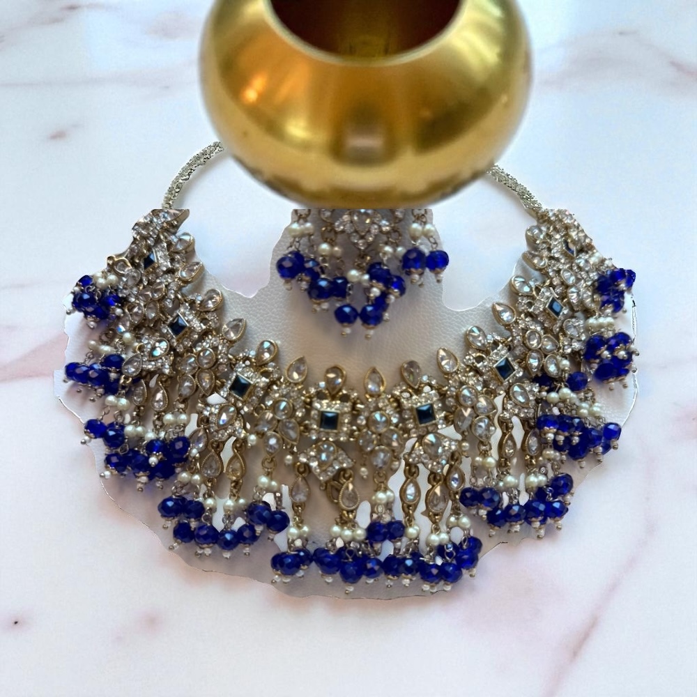Crystal Beaded Necklace in Royal Blue & Gold
