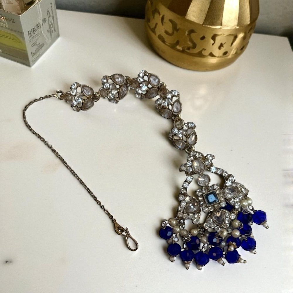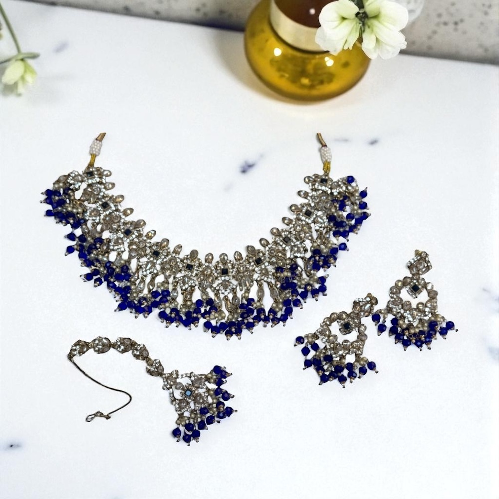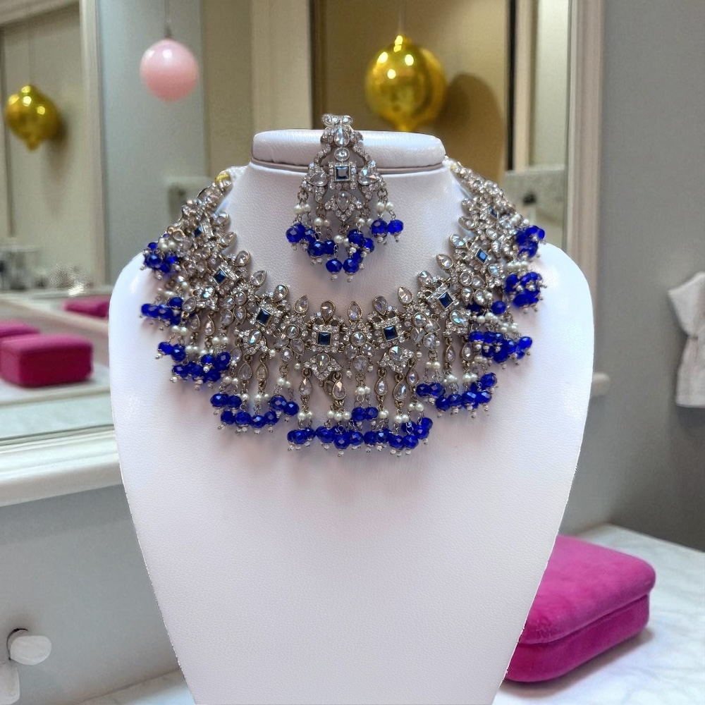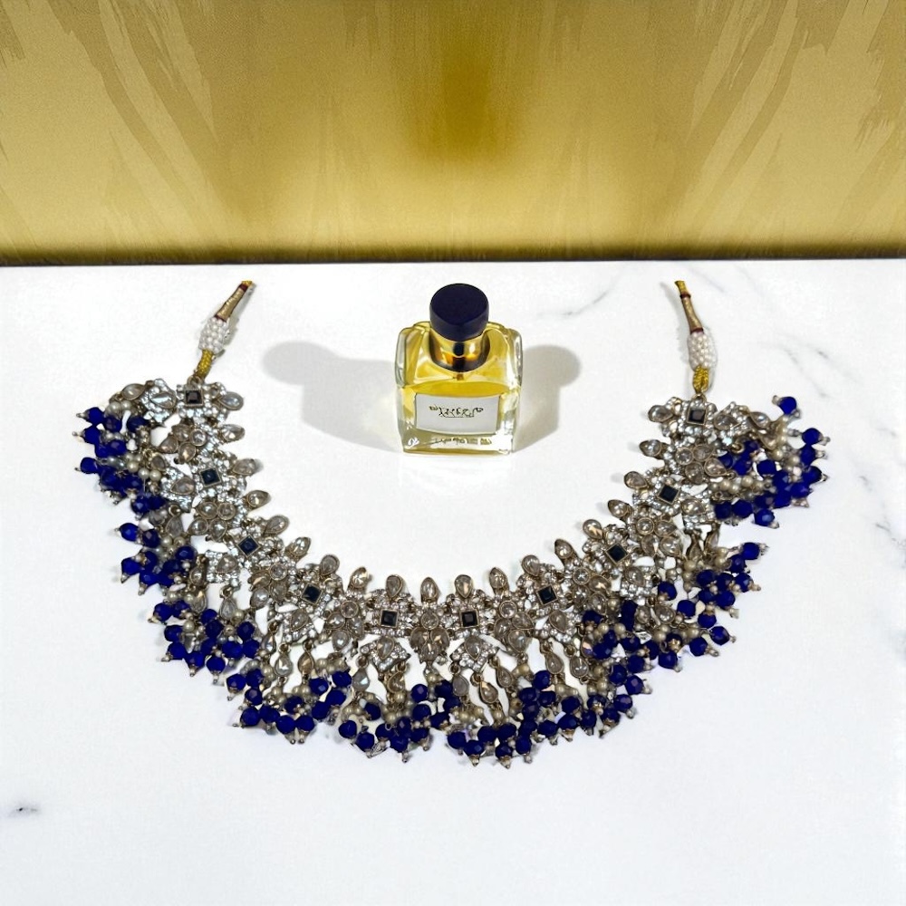 Crystal Beaded Necklace in Royal Blue & Gold
