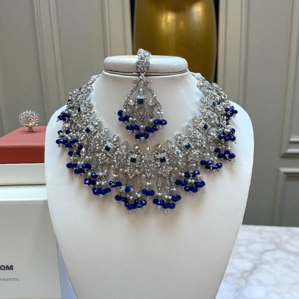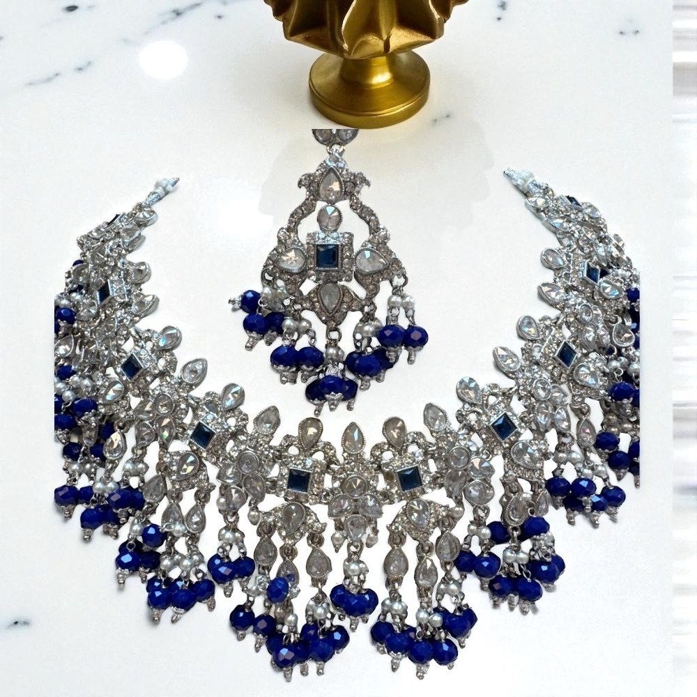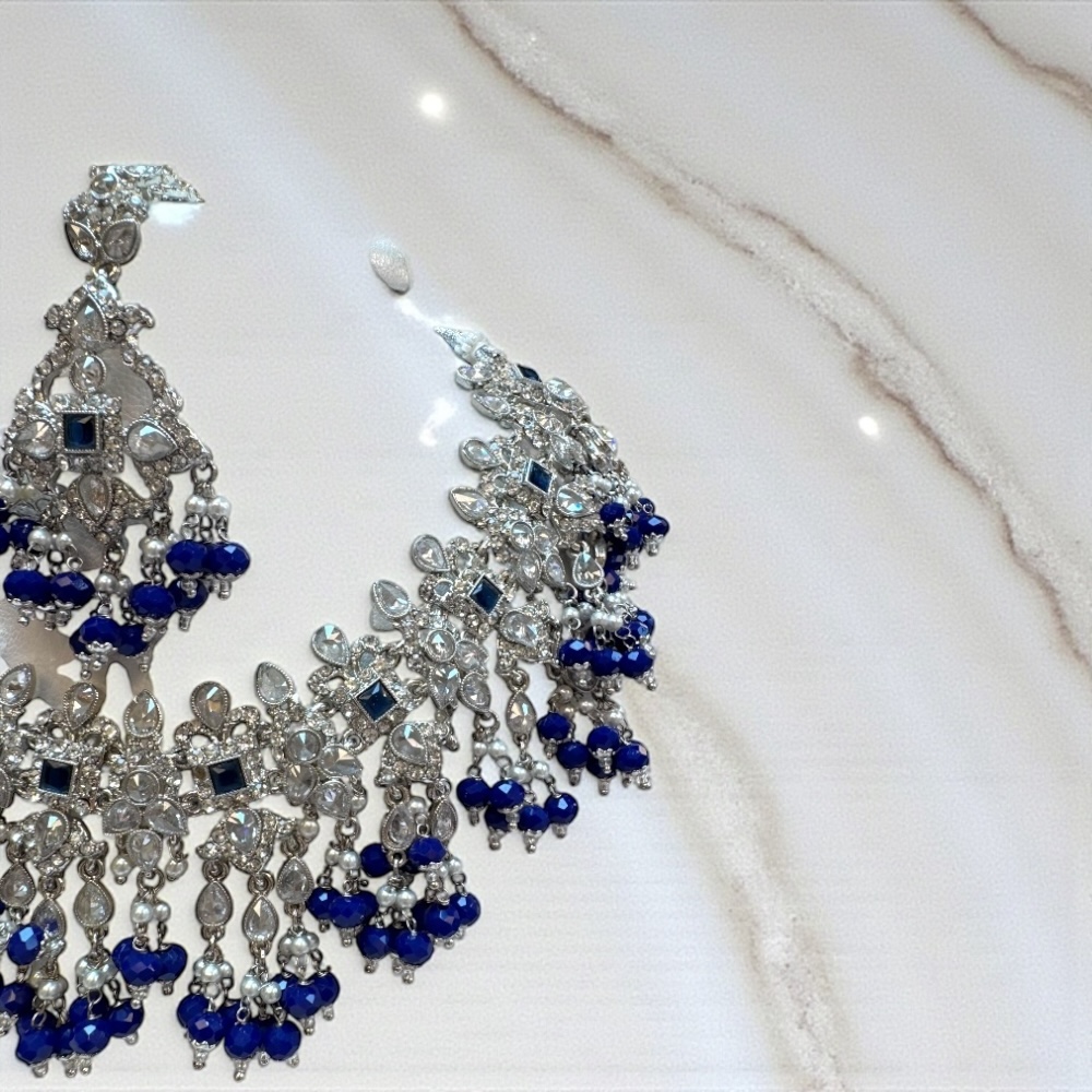 Crystal Beaded Necklace in Royal Blue & Silver