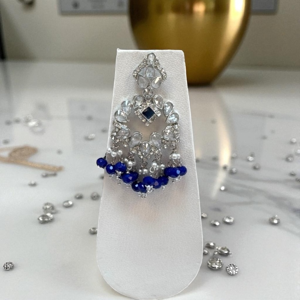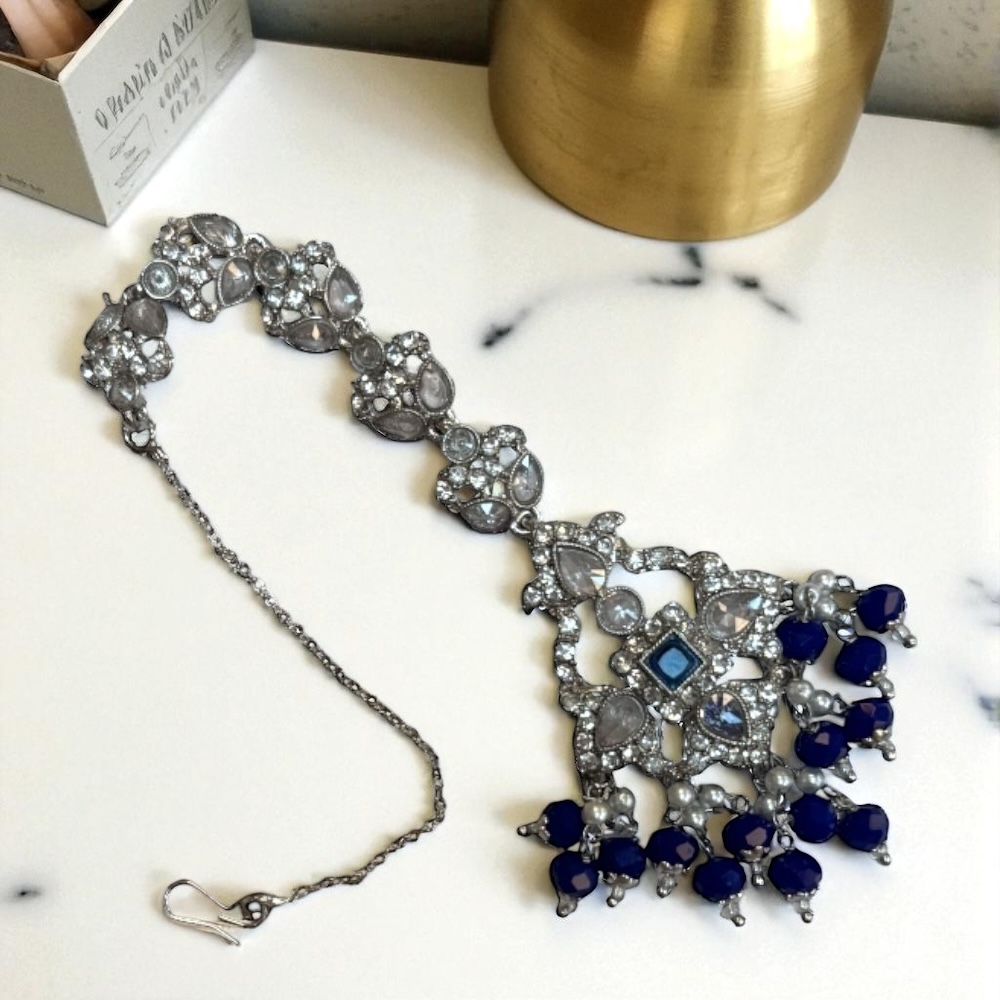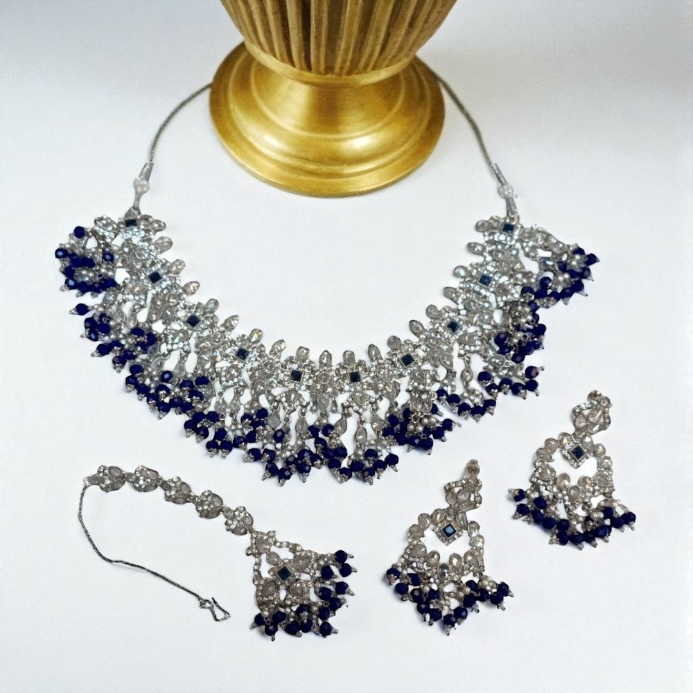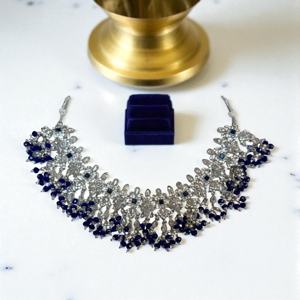 Crystal Beaded Necklace in Royal Blue & Silver