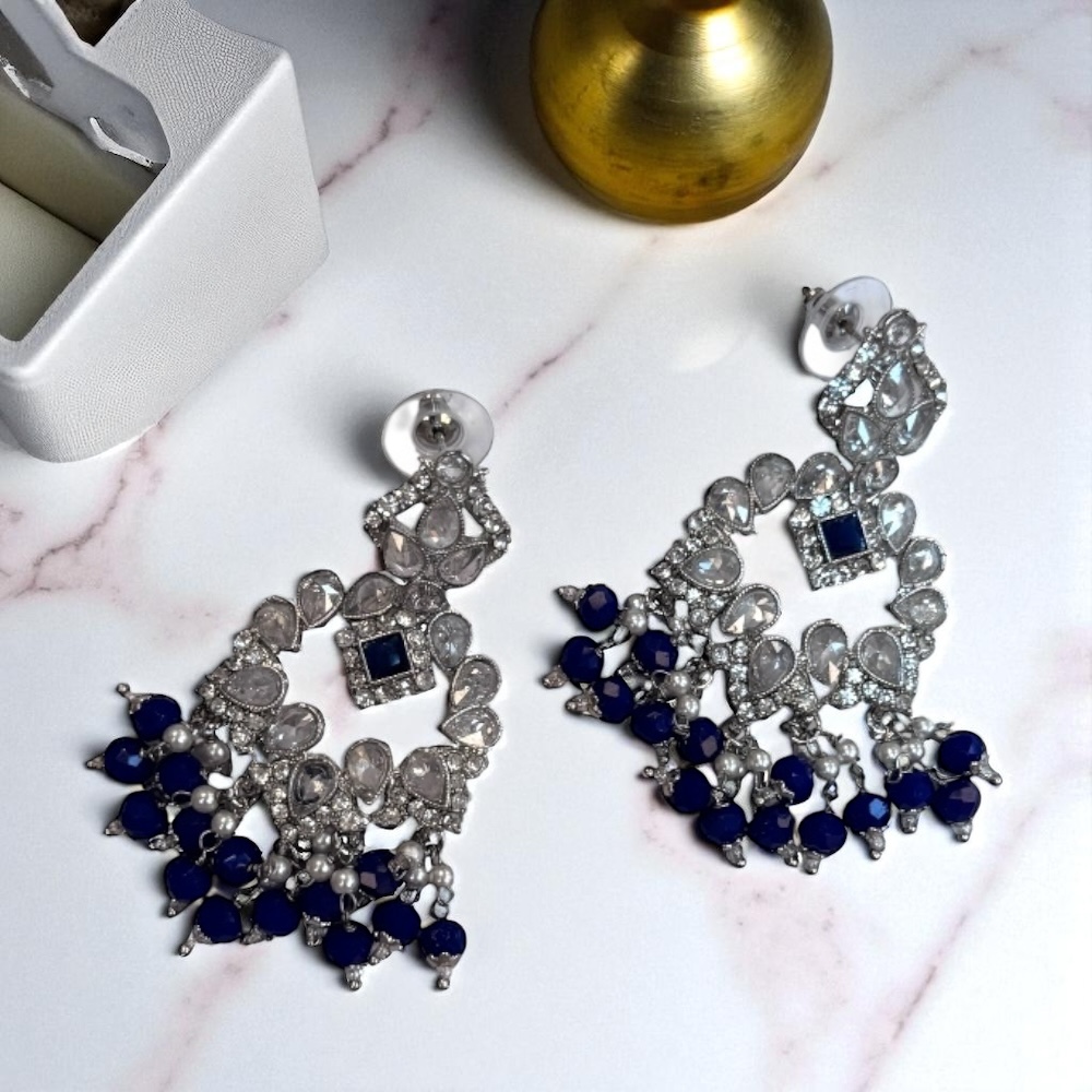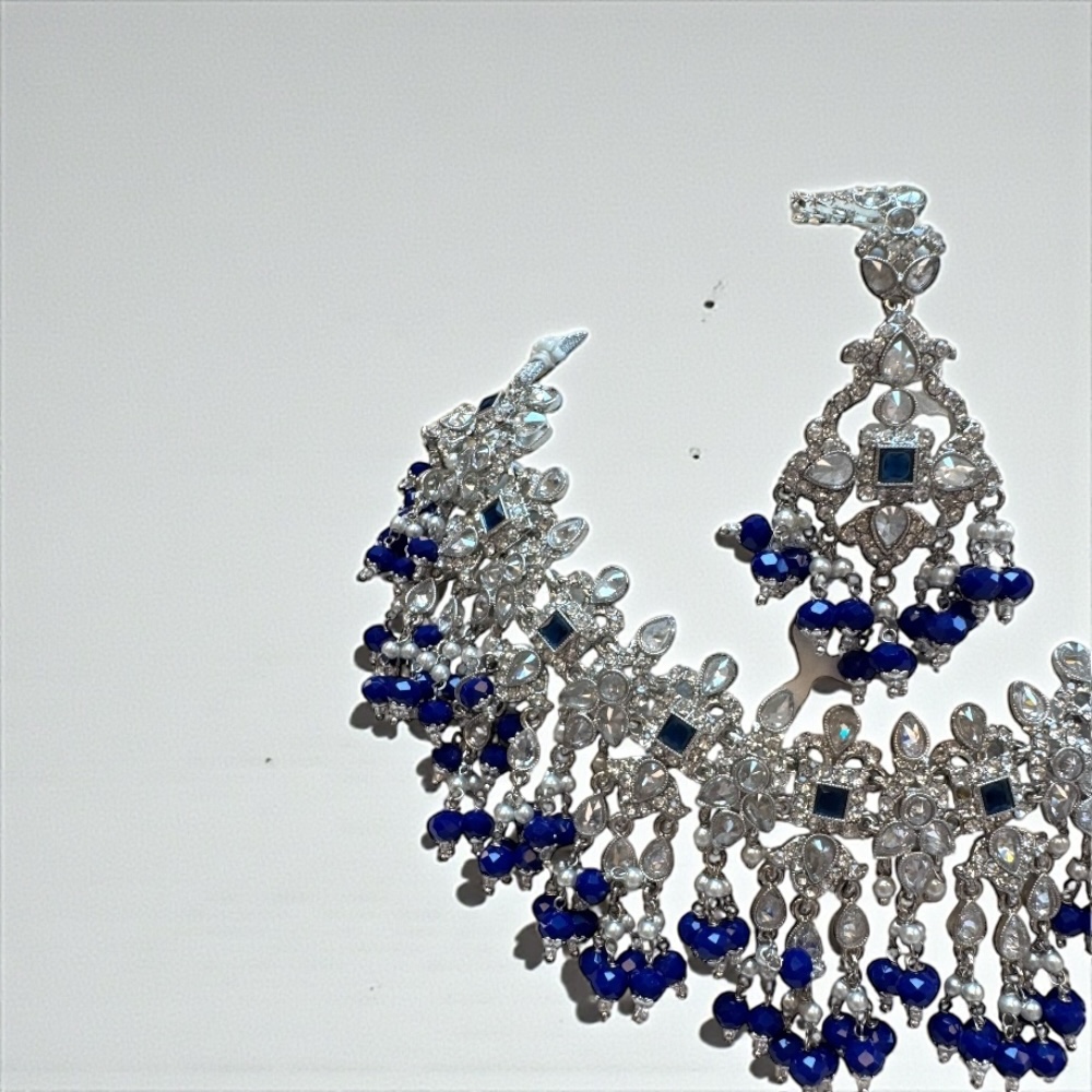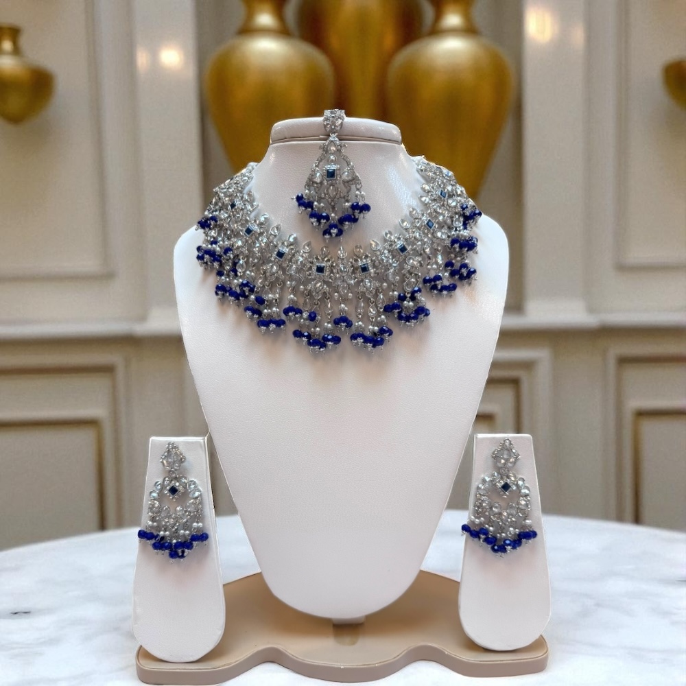Crystal Cascade Necklace Set – Royal Blue & Silver