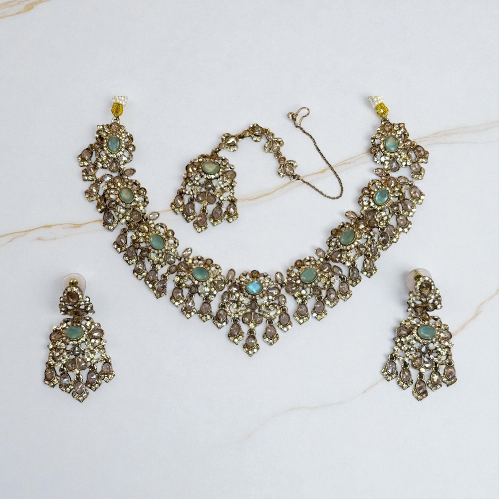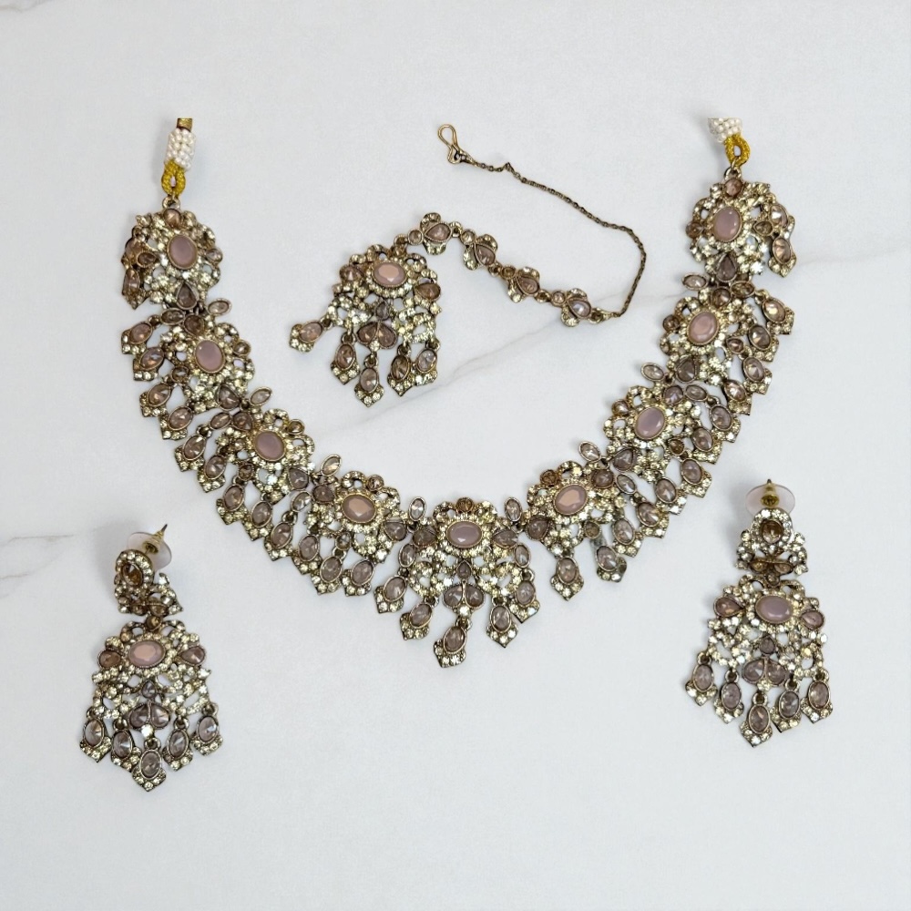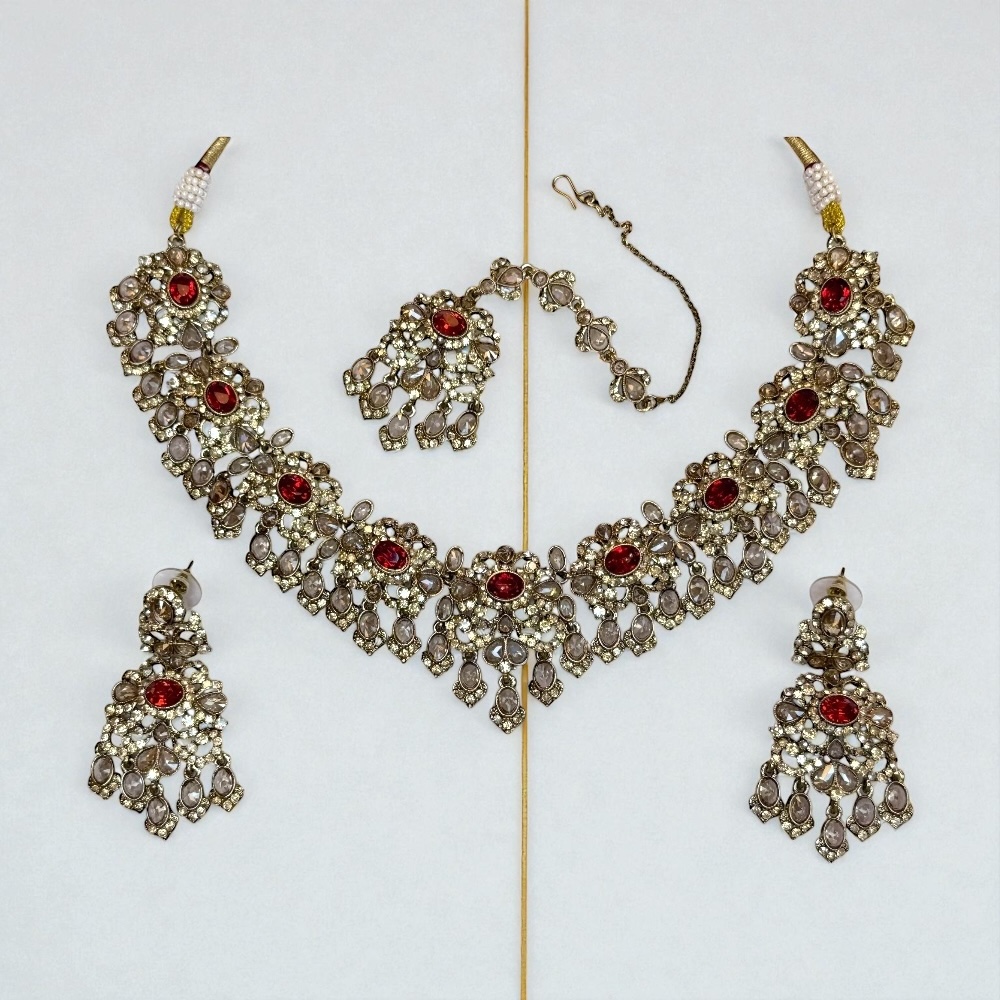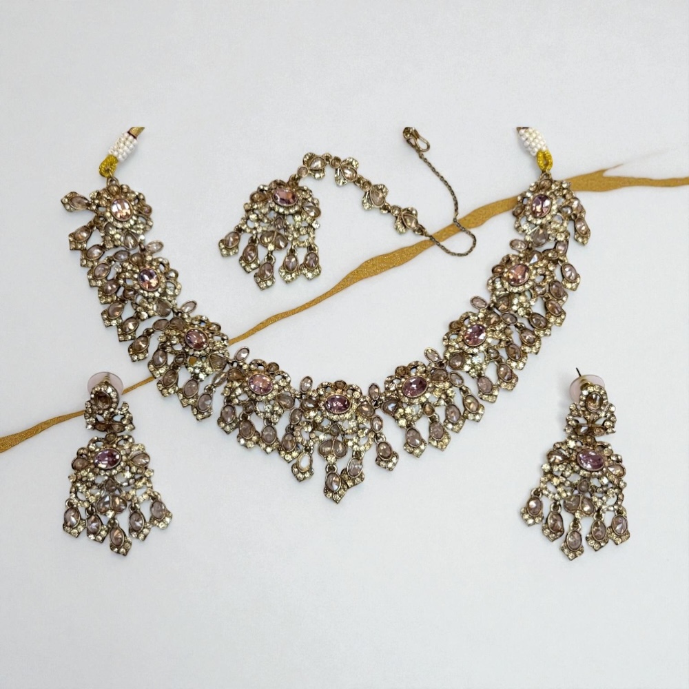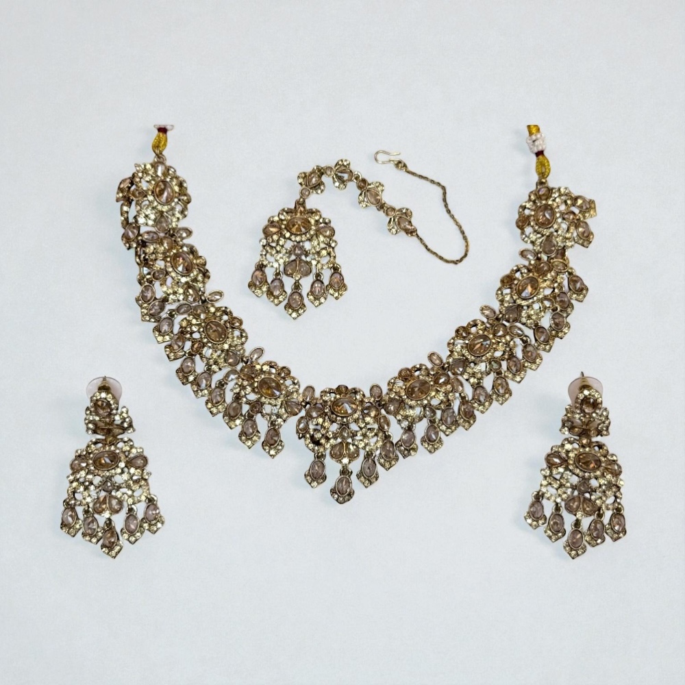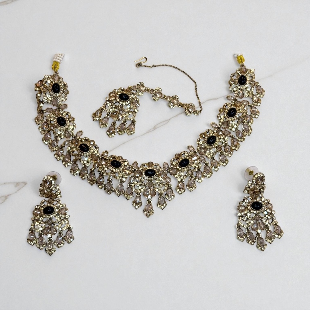 Crystal Charm – Necklace, Earrings & Tikka Set | Choker Style | Crystal Bridal Jewellery