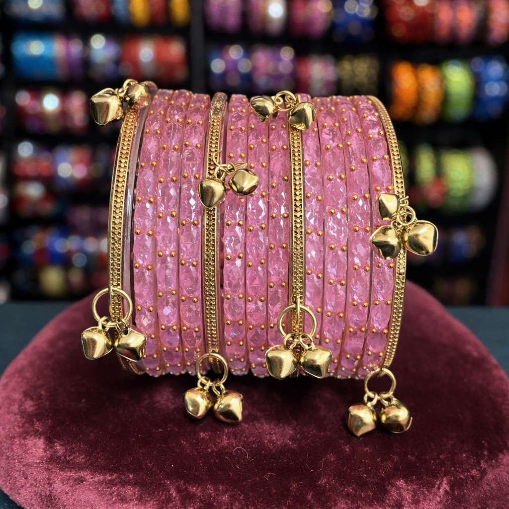 Enhance your bridal look with this stunning Glass Raindrop Bangles Set paired with Kashmiri Kungru Bangles. Designed for traditional elegance, this set is perfect for weddings, mehndi, and festive occasions.