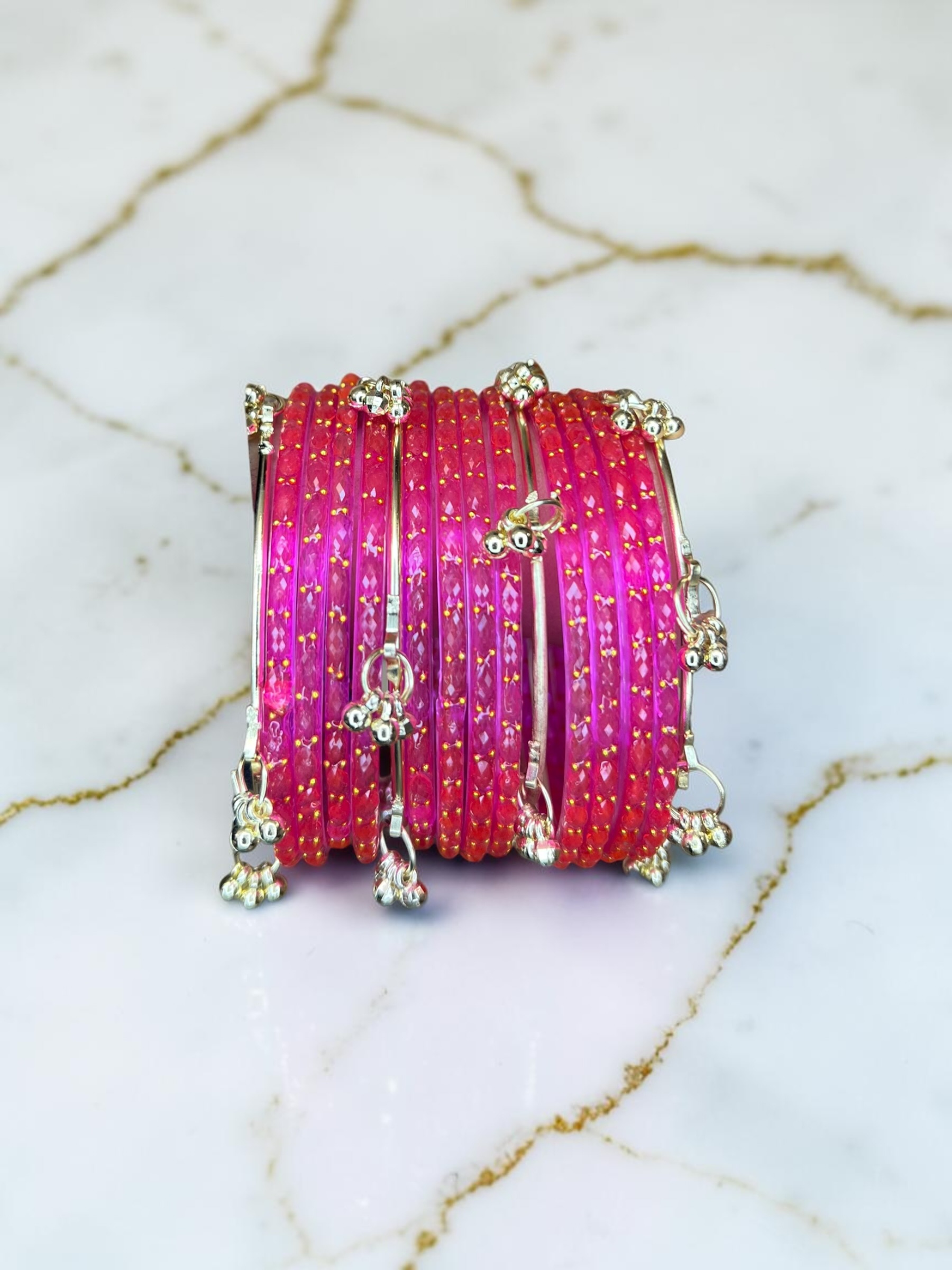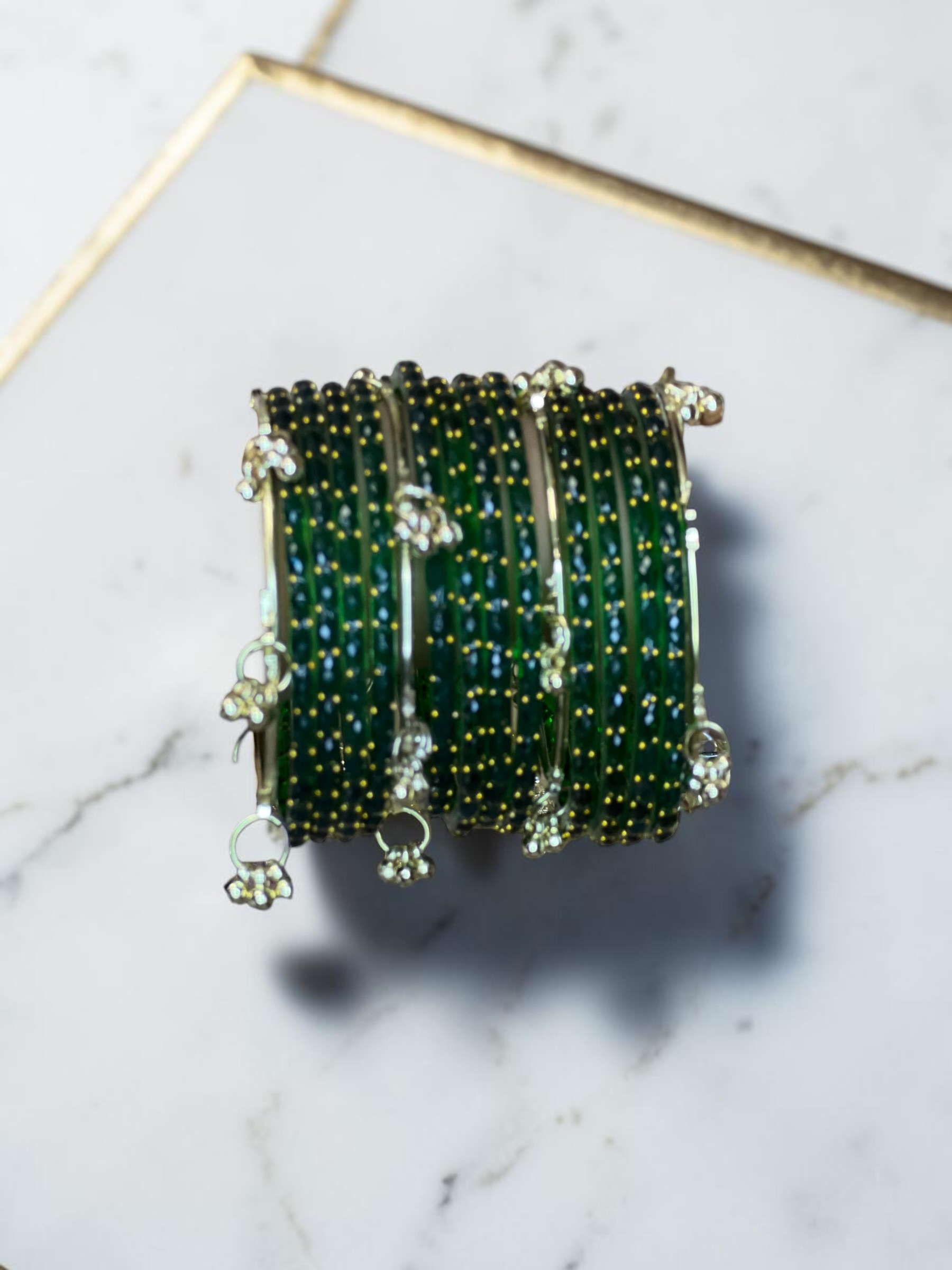 Glass Raindrop Bangles Set (12) with Kashmiri Kungru Bangles (4) – Bridal Churi Set | Traditional Indian & Pakistani Wedding Jewelry