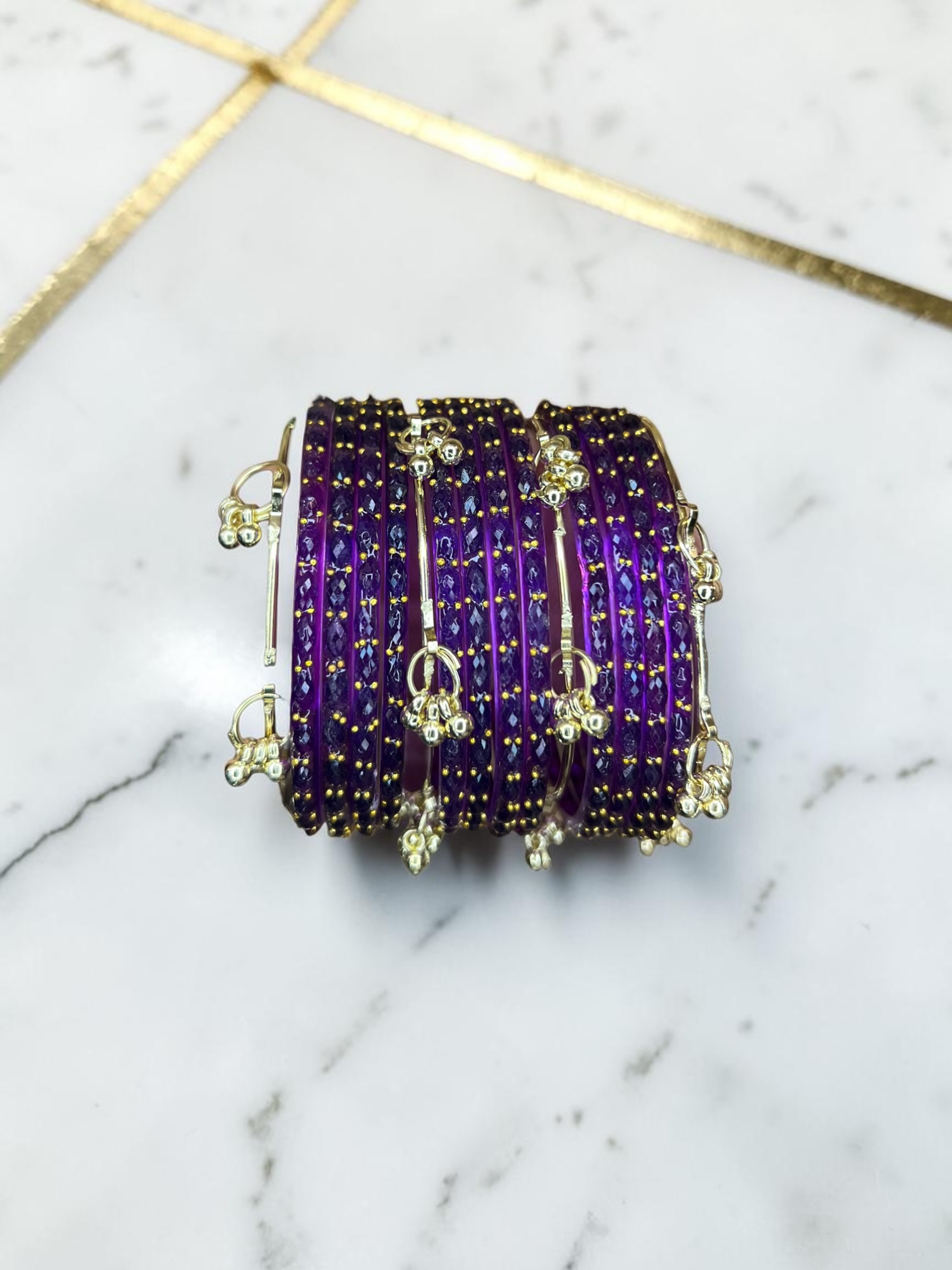 - Set includes 12 Glass Raindrop Bangles + 4 Kashmiri Kungru Bangles