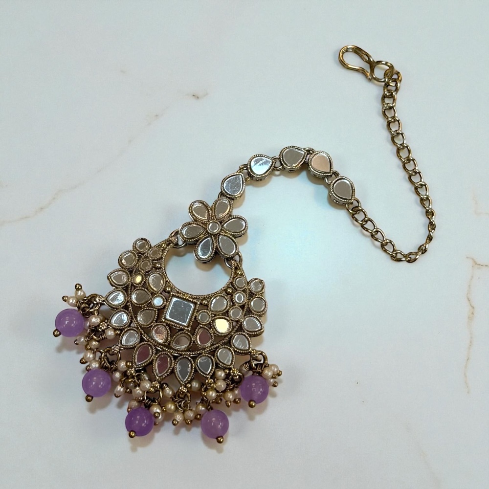 Each piece is carefully handmade with lilac beads that add a soft, royal touch — while the antique silver design gives it a luxurious, vintage feel. Ideal for weddings, mehndi, festive wear, or cultural celebrations, this necklace set effortlessly enhances both ethnic and Indo-western outfits.