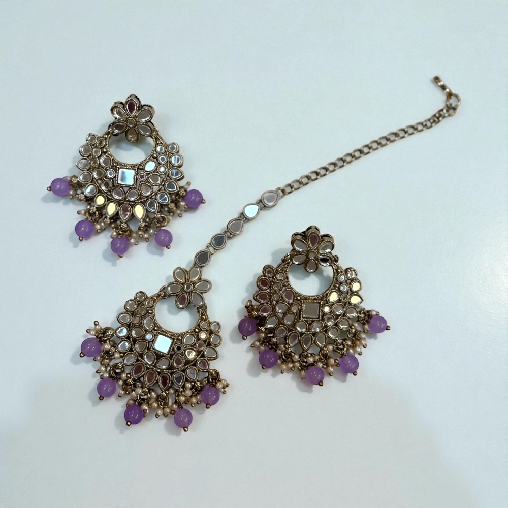 Add elegance to your festive look with this Handmade Lilac Beaded Mirror Necklace Set featuring antique silver detailing and traditional mirror work. Perfect for weddings, parties, and festive occasions, this ethnic choker jewellery set offers a beautiful blend of Indian tradition and boho style
