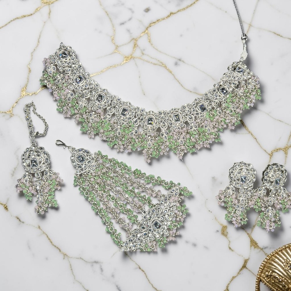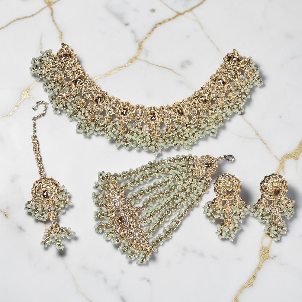 The intricate detailing and fine craftsmanship reflect classic Pakistani and Indian jewelry styles. Whether you’re attending a wedding, mehndi, or festive event, this set adds a luxurious and graceful touch to your outfit.