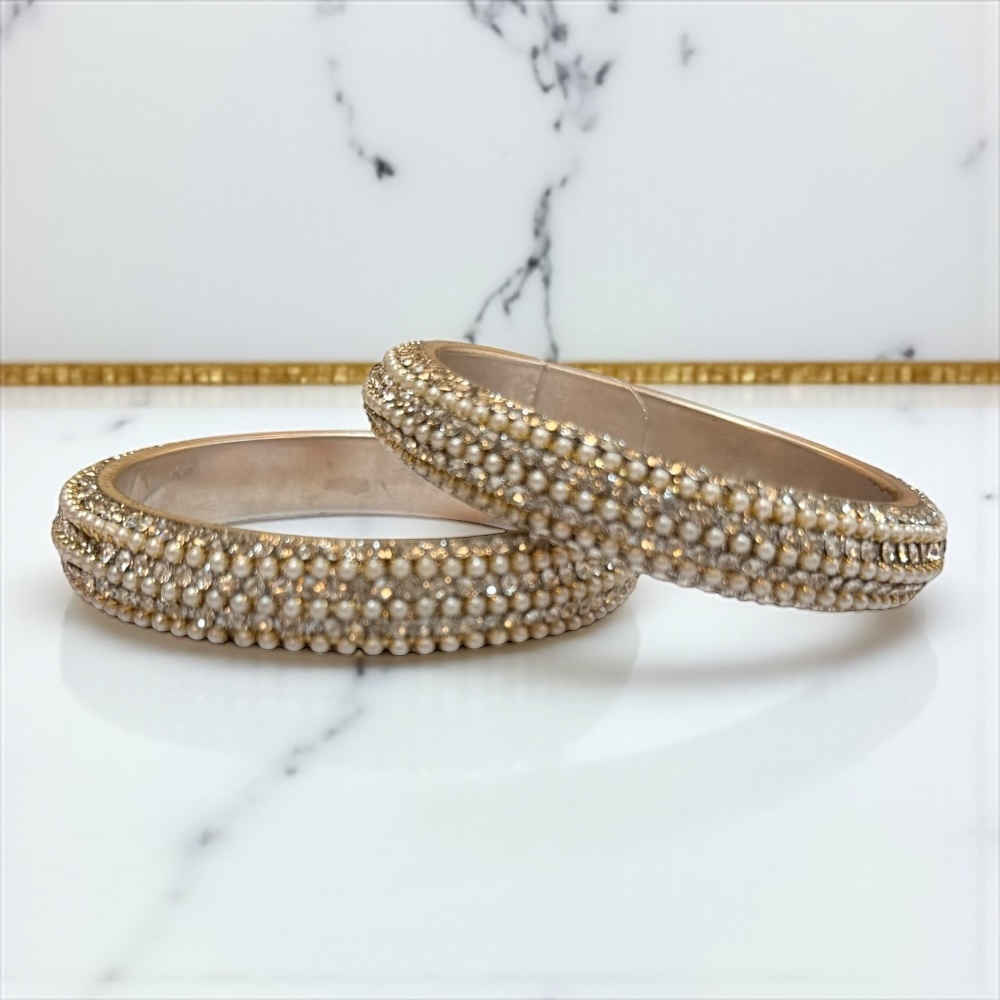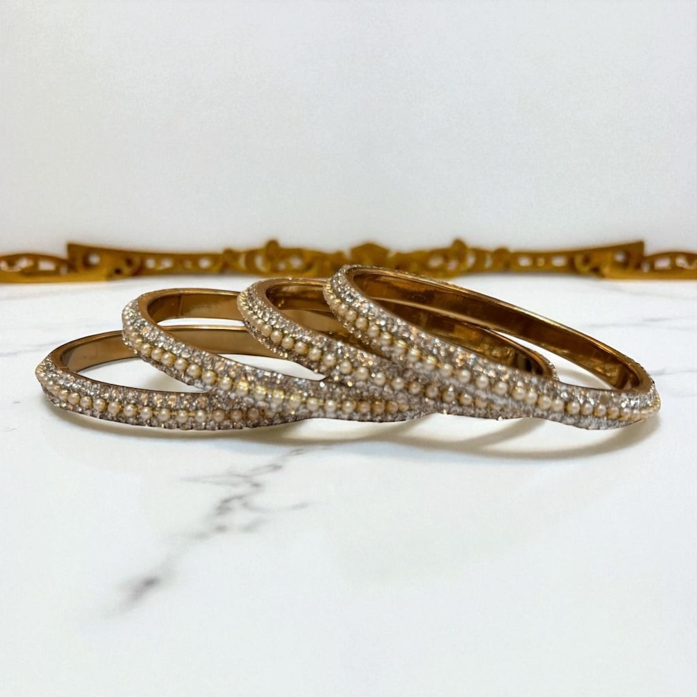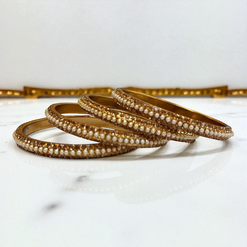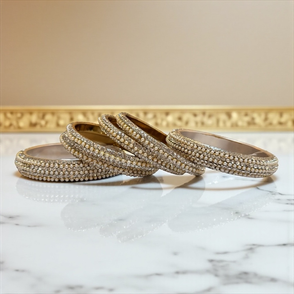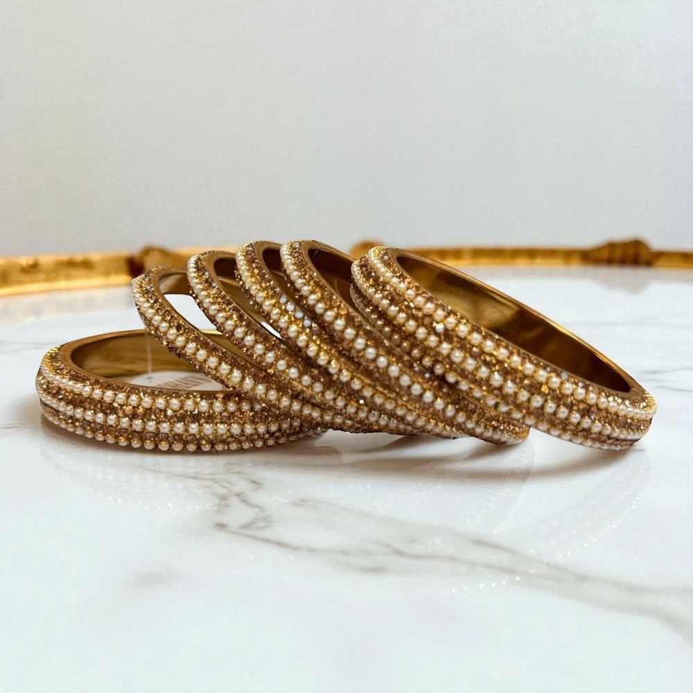 Pearl Bangles Set – 6 Kara & Churi Indian Pakistani Bridal Jewelry Gold Silver