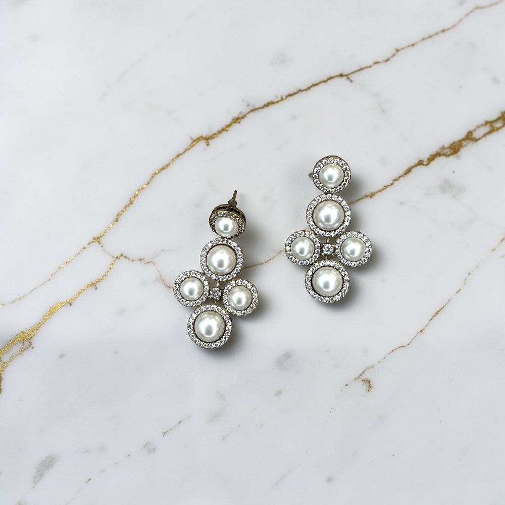 Elegant pearl bridal jewellery set including necklace, matching earrings and tikka. Perfect for Indian & Pakistani weddings, mehndi, walima and festive occasions. Lightweight, traditional design with royal pearl detailing.