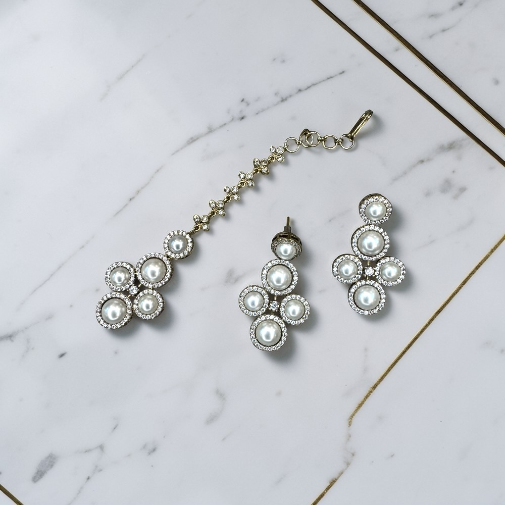 Pearl Jewelry Set Necklace Earrings Tikka Traditional Indian Pakistani Bridal Jewellery