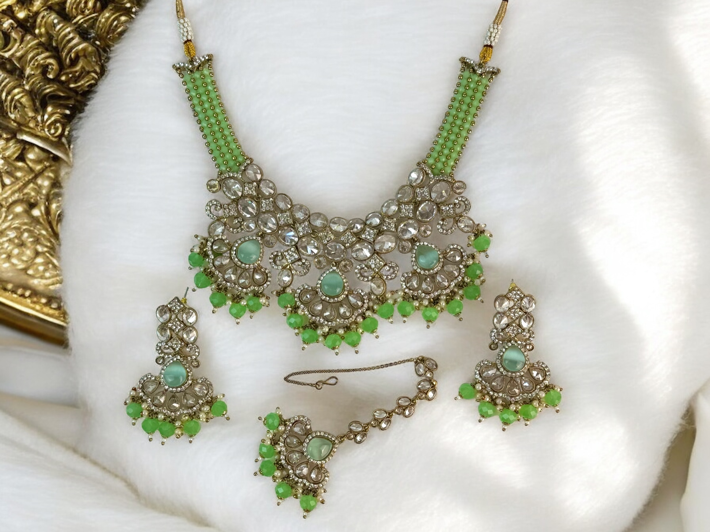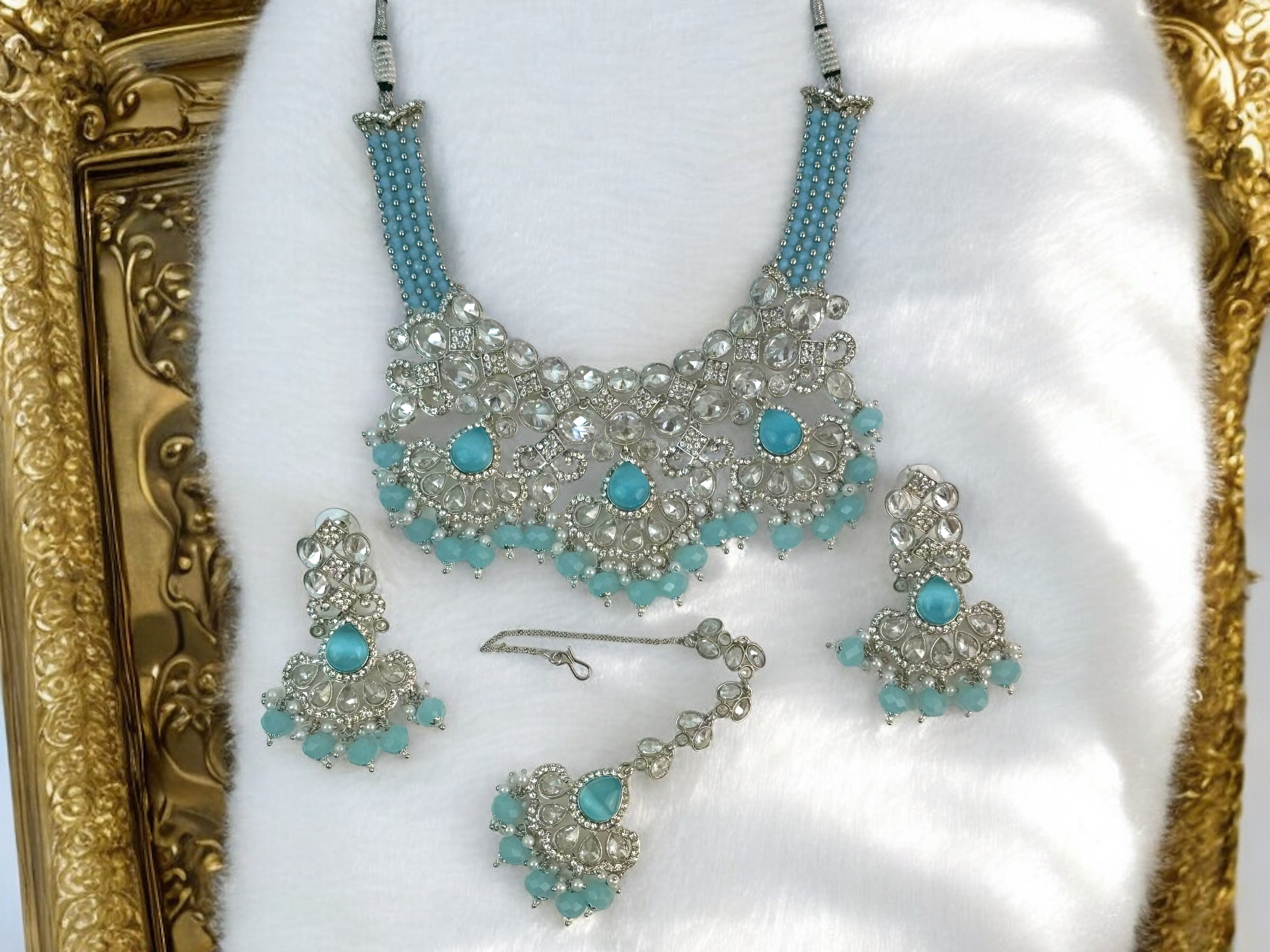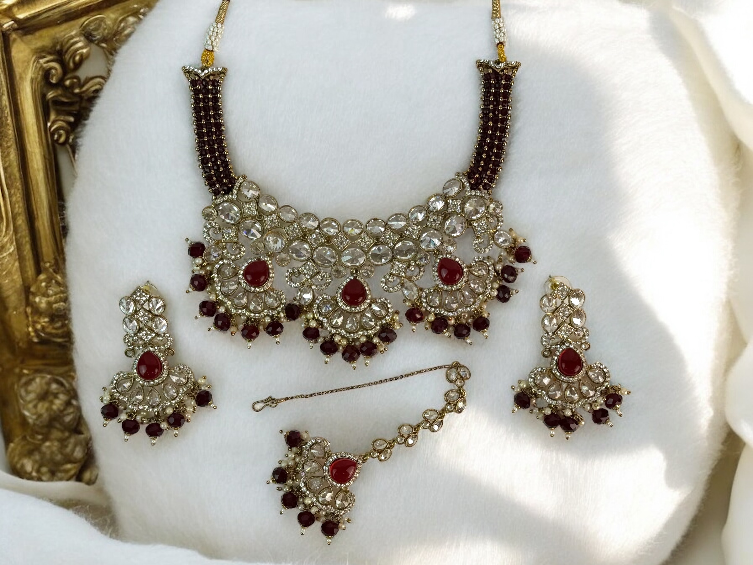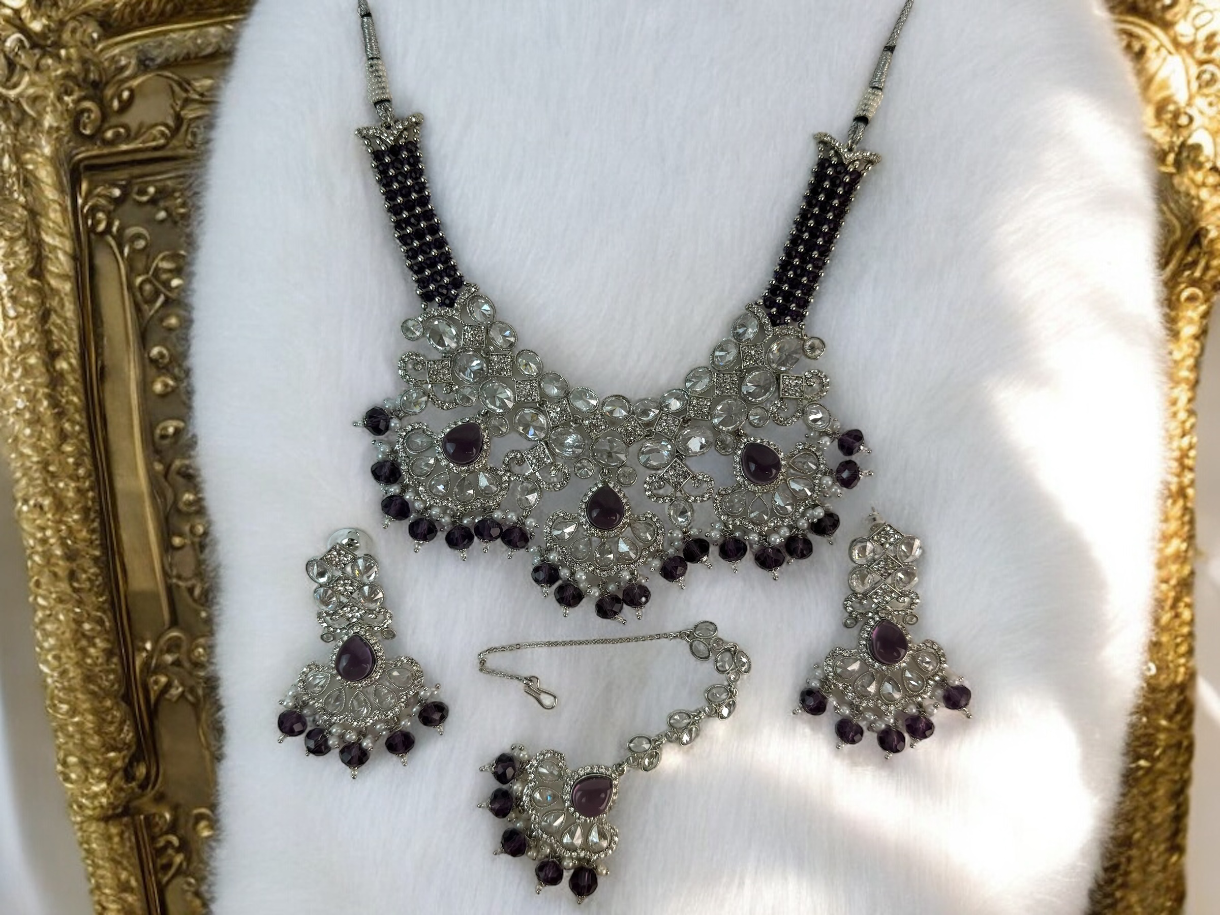 Royal Mughal Treasure Zirconia Bridal Jewellery Set – Necklace, Earrings & Tikka