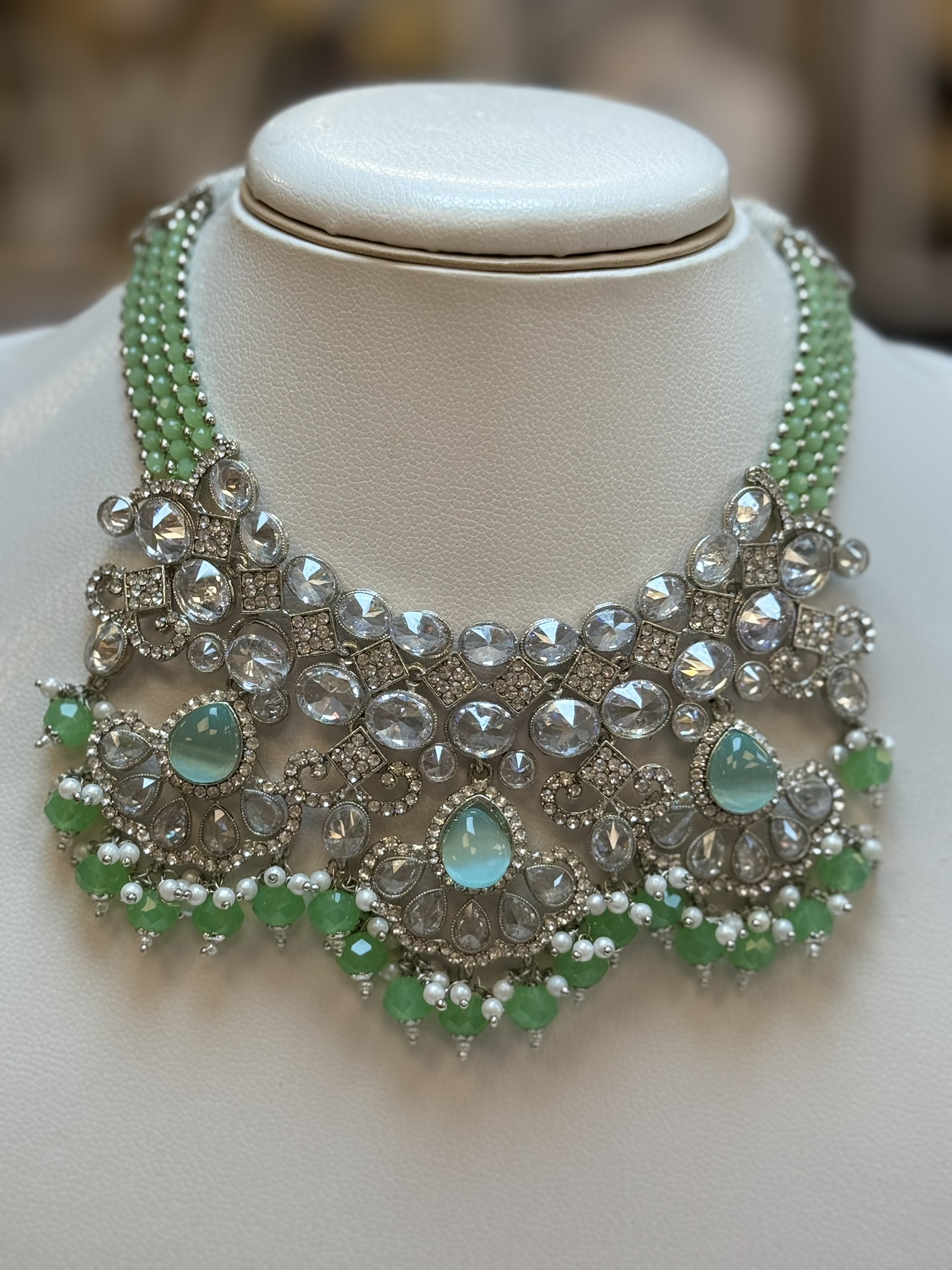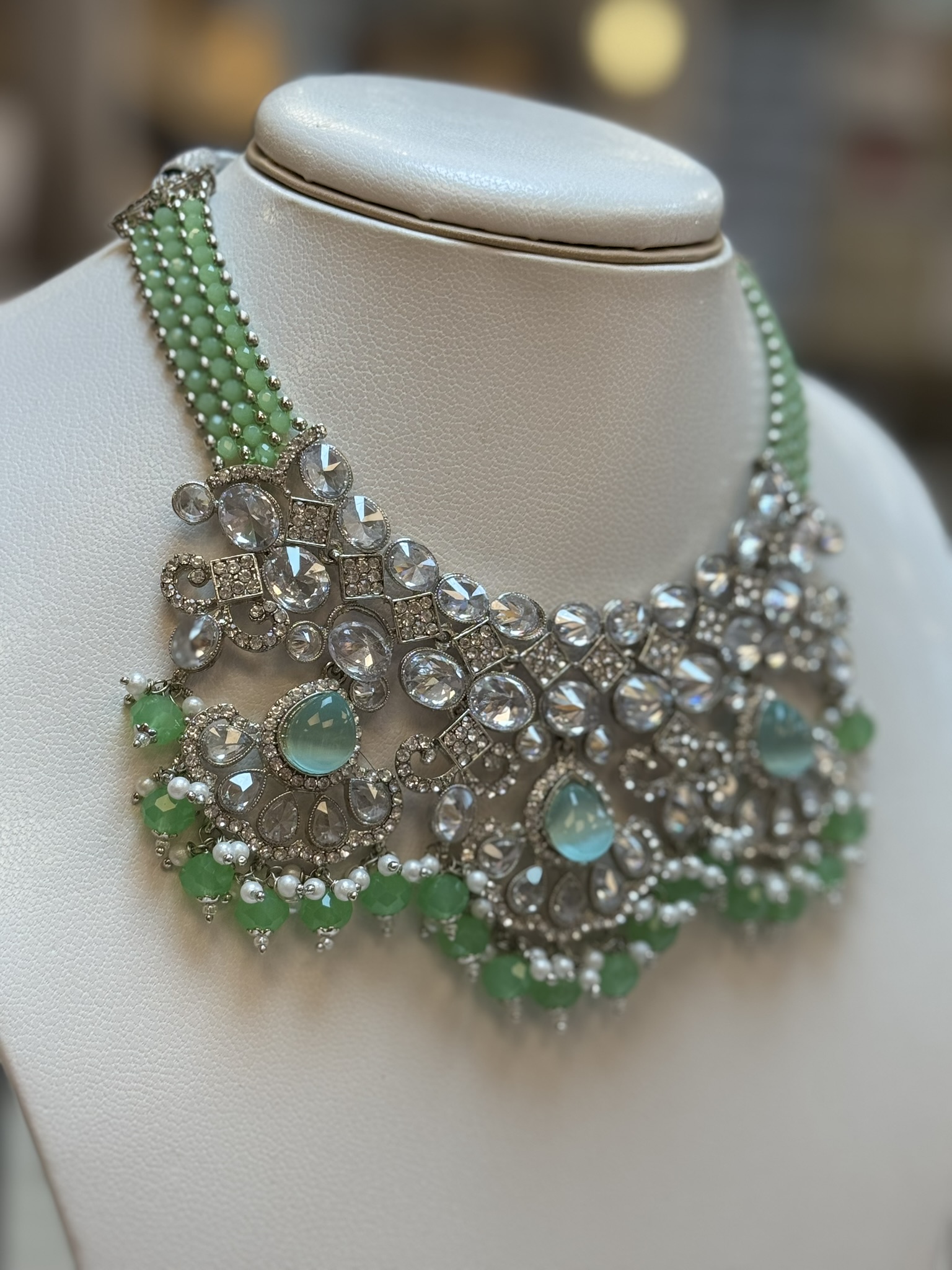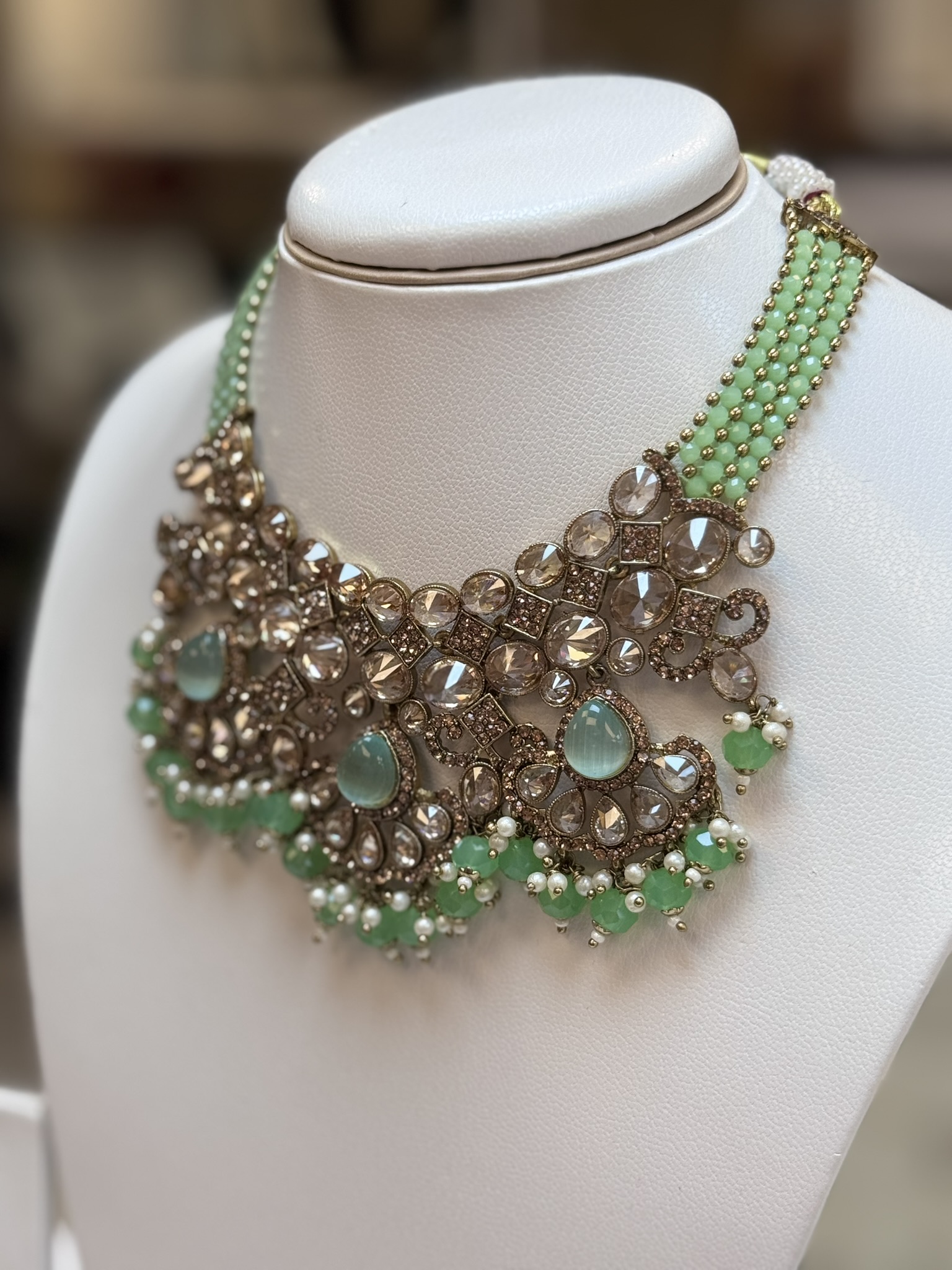 Royal Mughal Treasure Zirconia Bridal Jewellery Set – Necklace, Earrings & Tikka