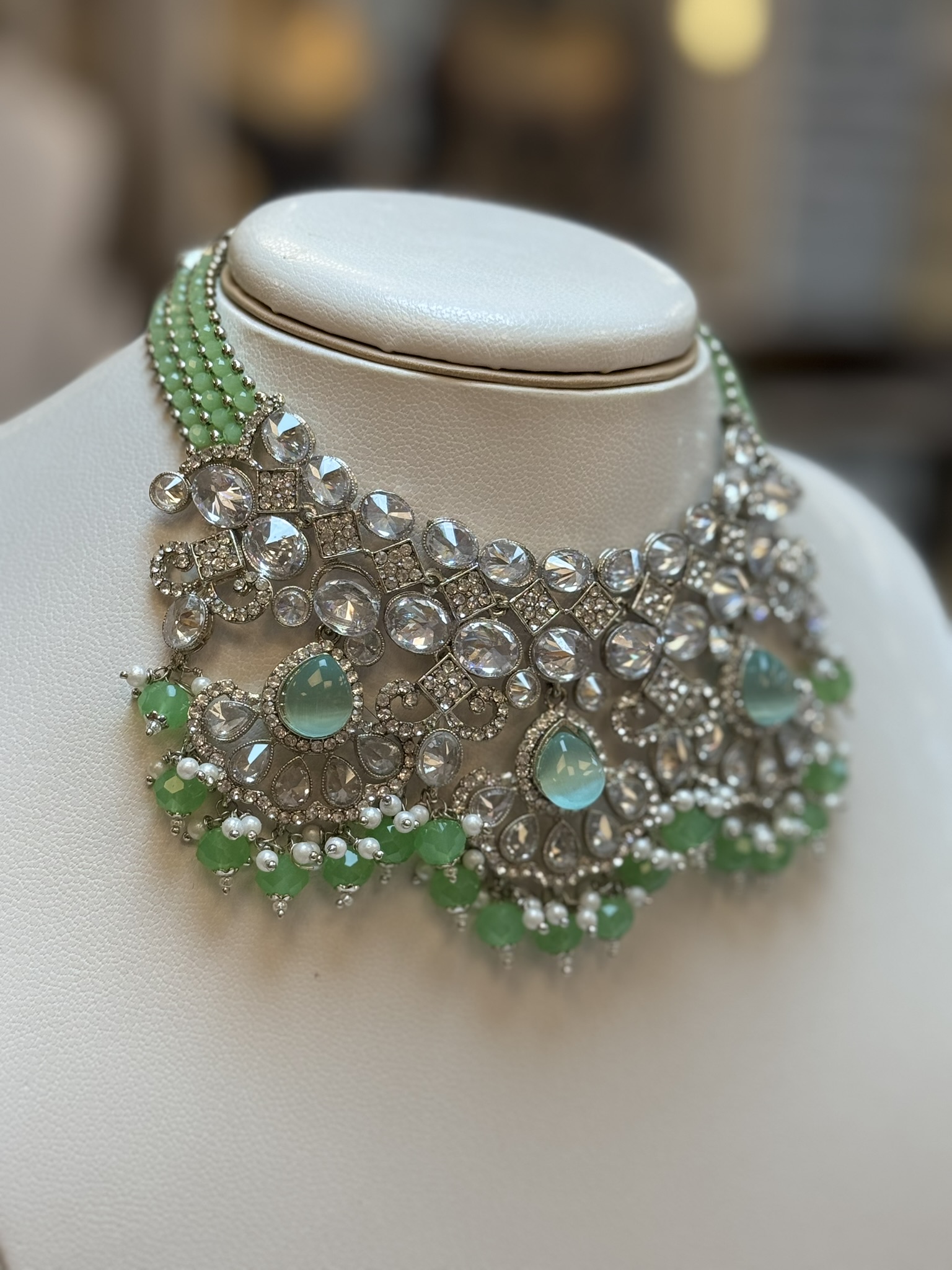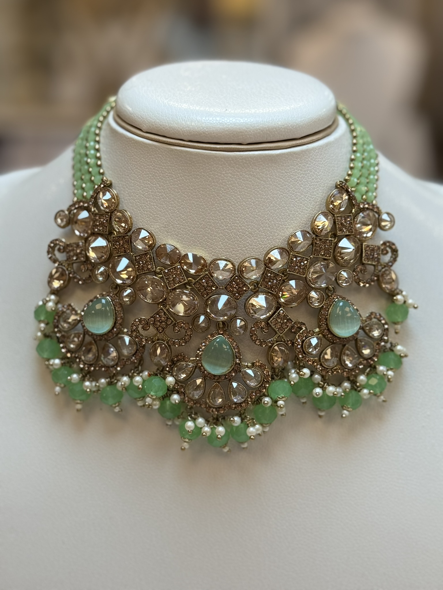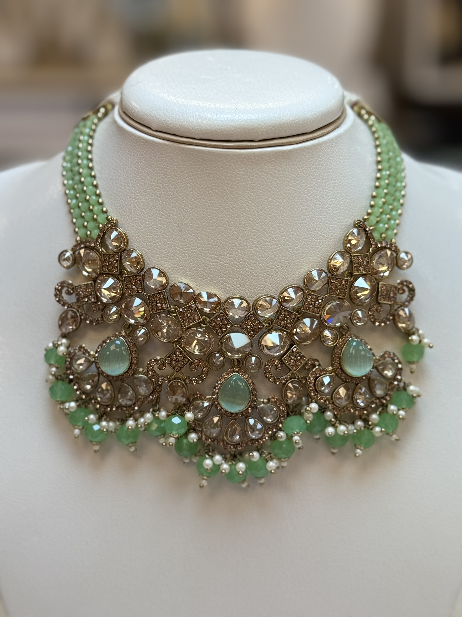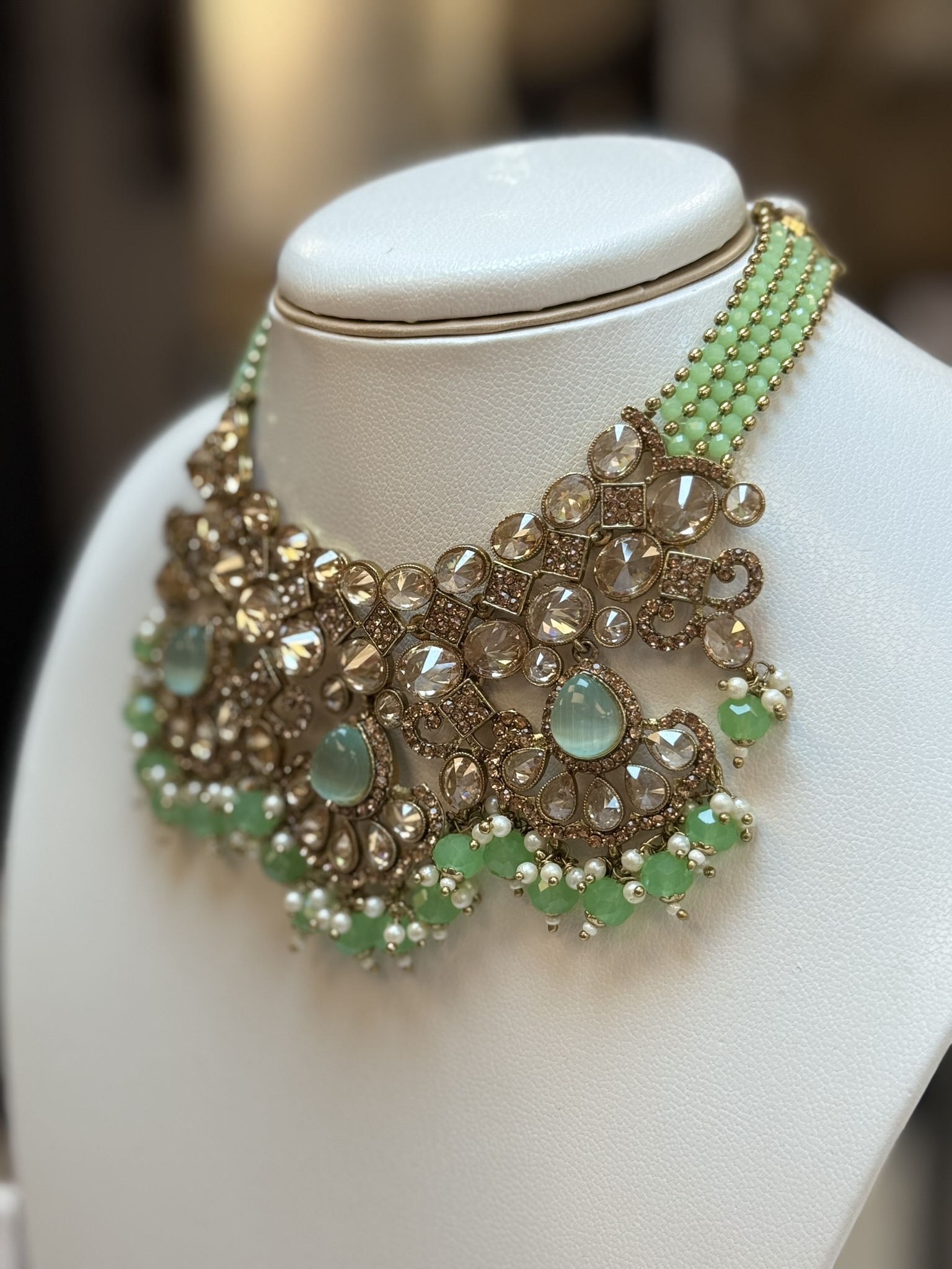 Royal Mughal Treasure Zirconia Bridal Jewellery Set – Necklace, Earrings & Tikka