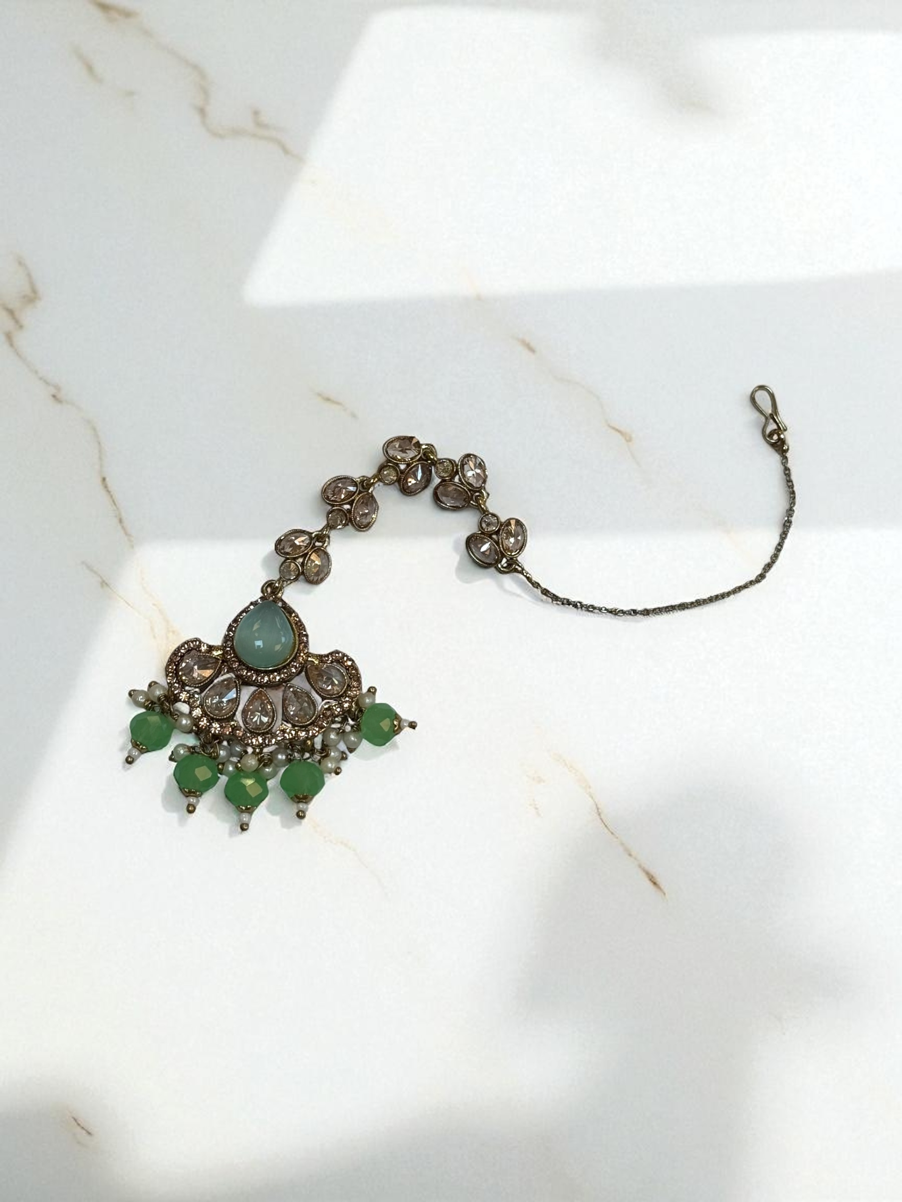 This exquisite 3-piece set includes a statement necklace, matching earrings, and a tikka, embellished with high-quality Zirconia stones that sparkle like real diamonds. Inspired by the Mughal era, this jewellery set combines heritage, craftsmanship, and contemporary charm.