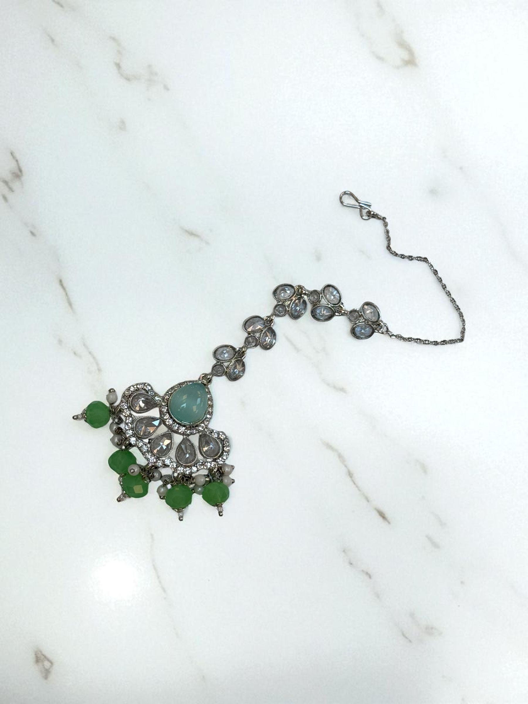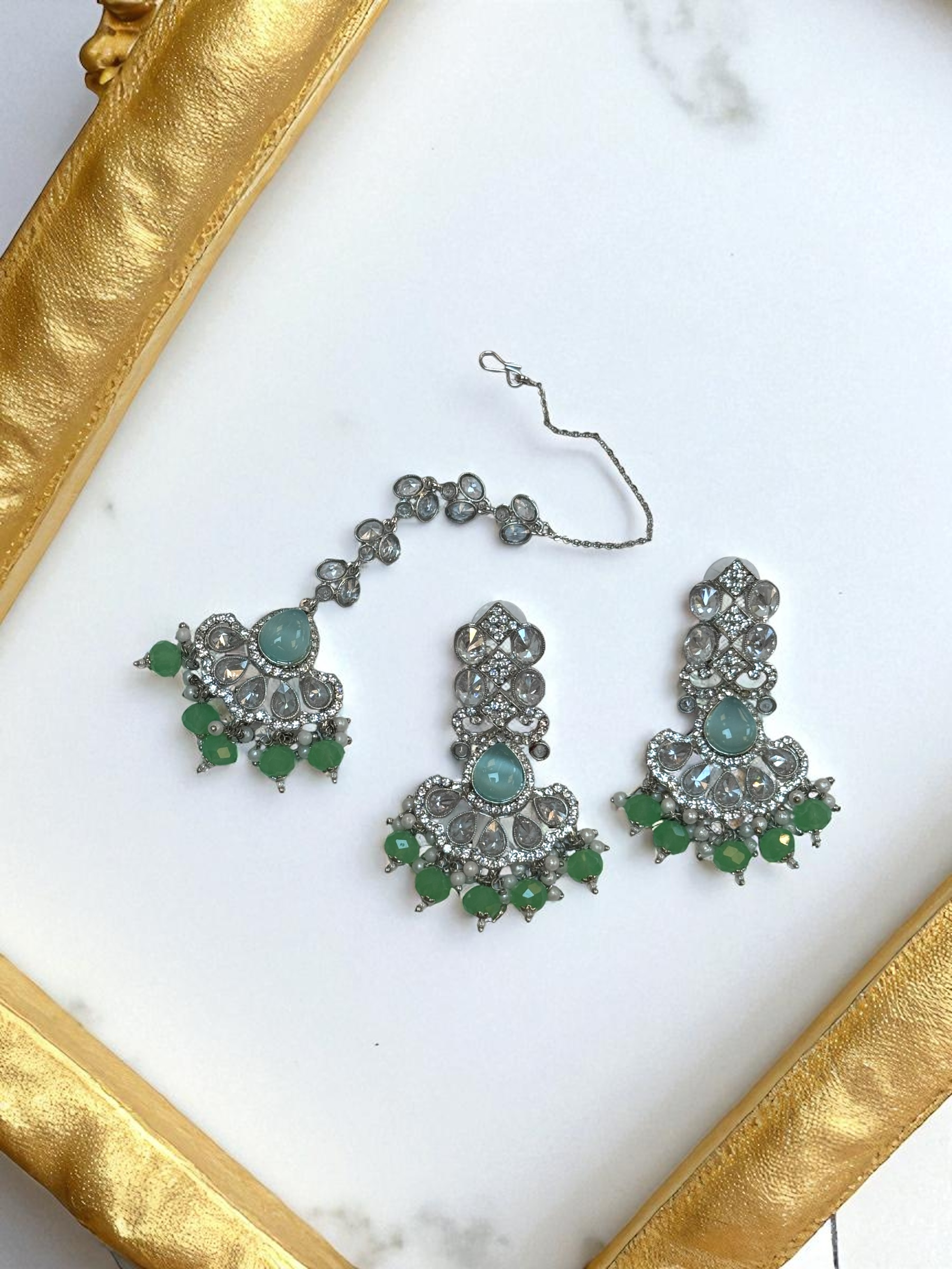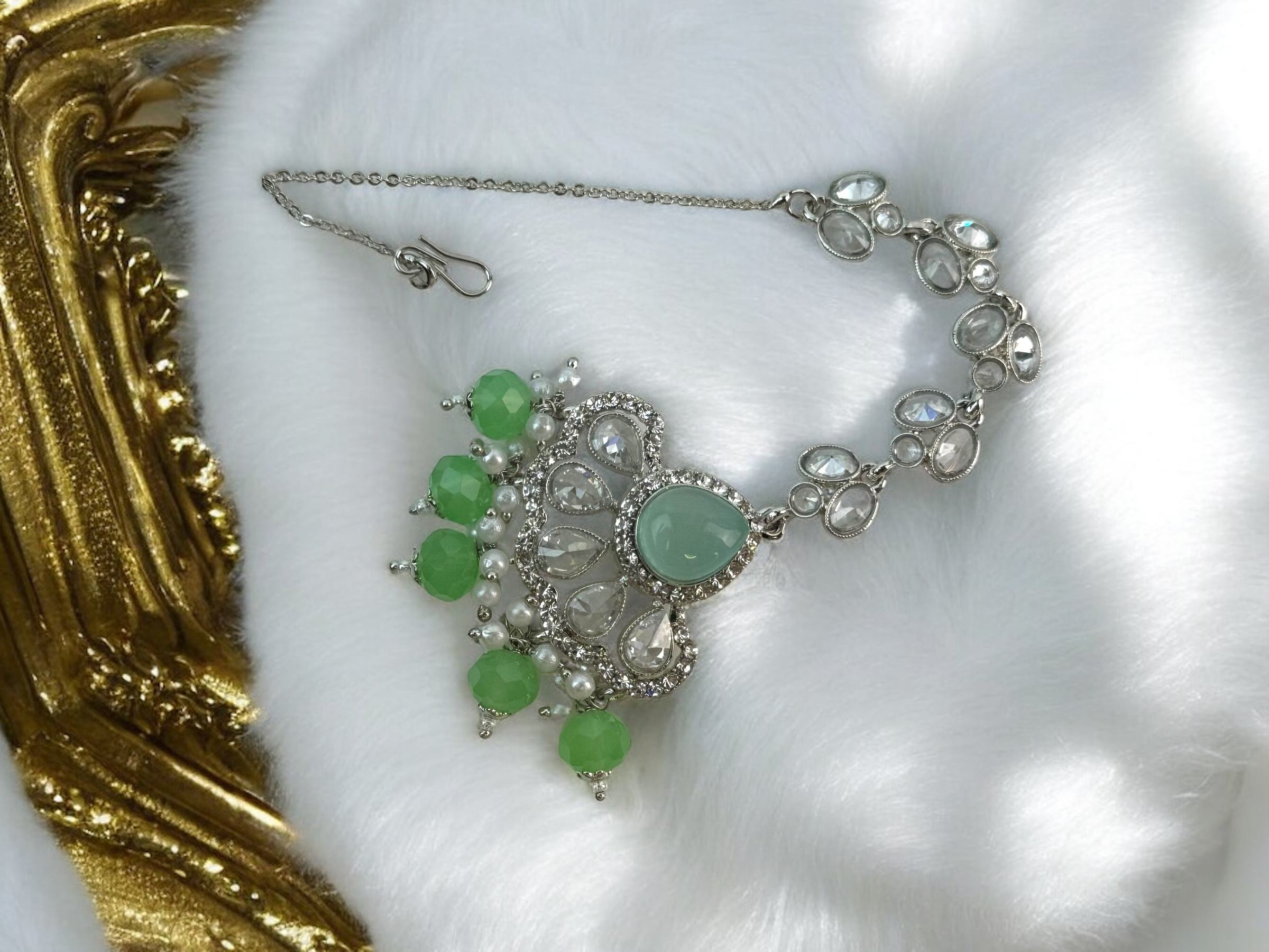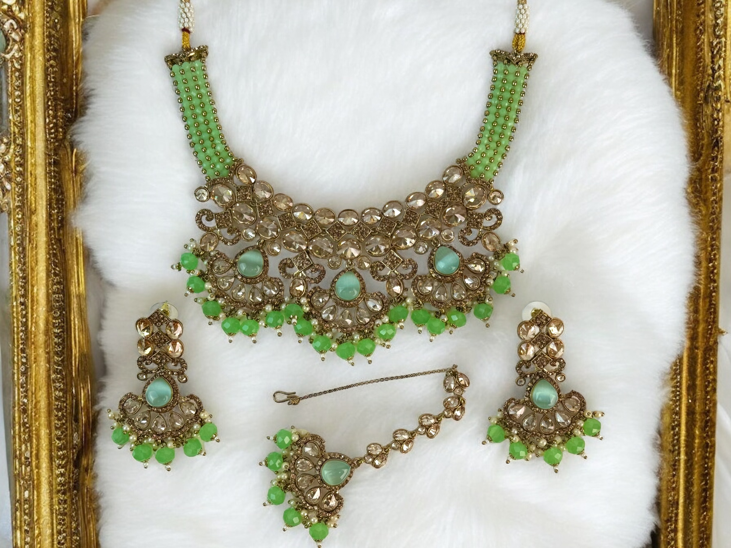 Add a touch of royal elegance to your look with this Mughal-inspired Zirconia Jewellery Set, featuring a necklace, earrings, and tikka. Perfect for brides, weddings, parties, and festive occasions.
