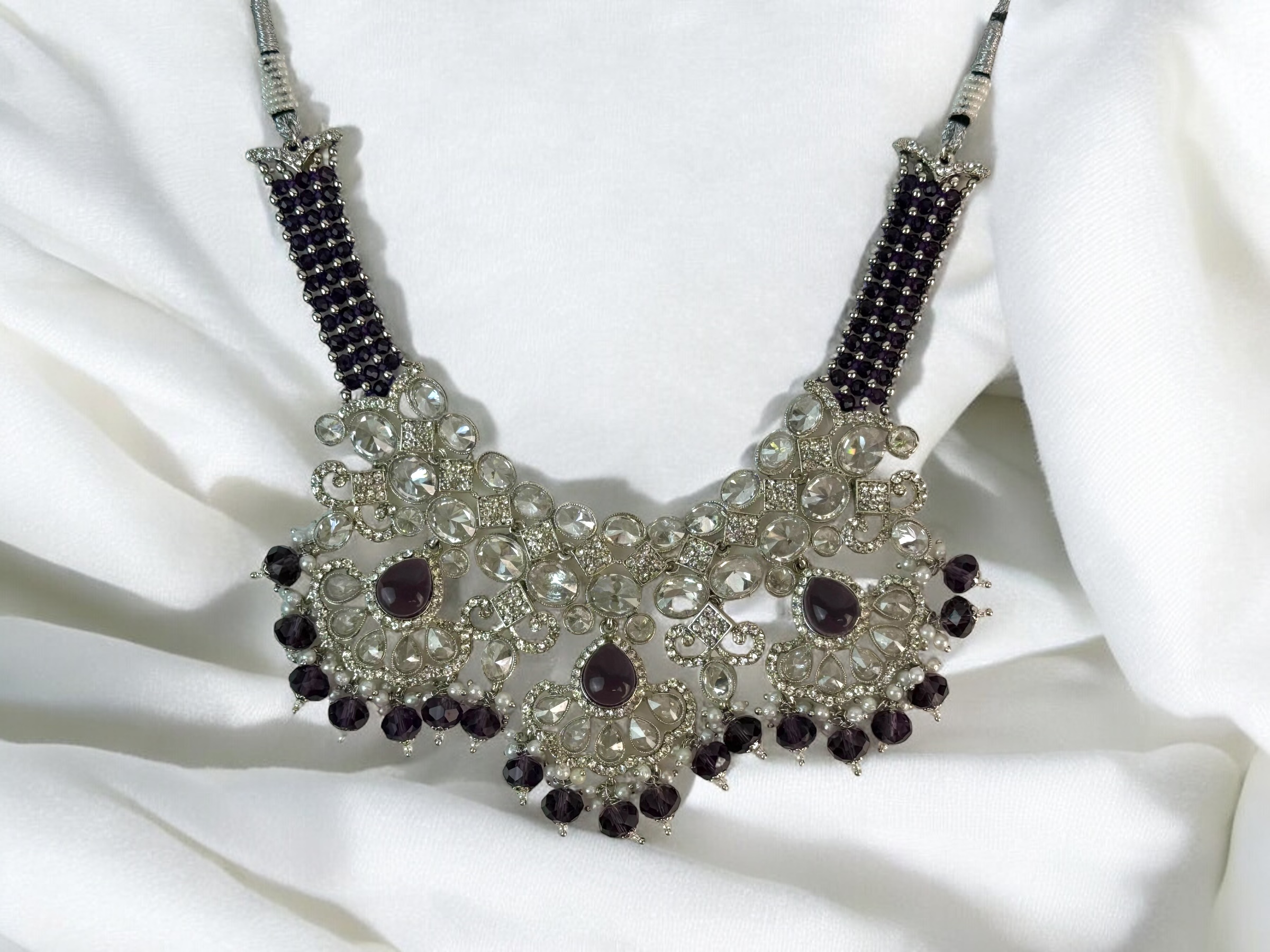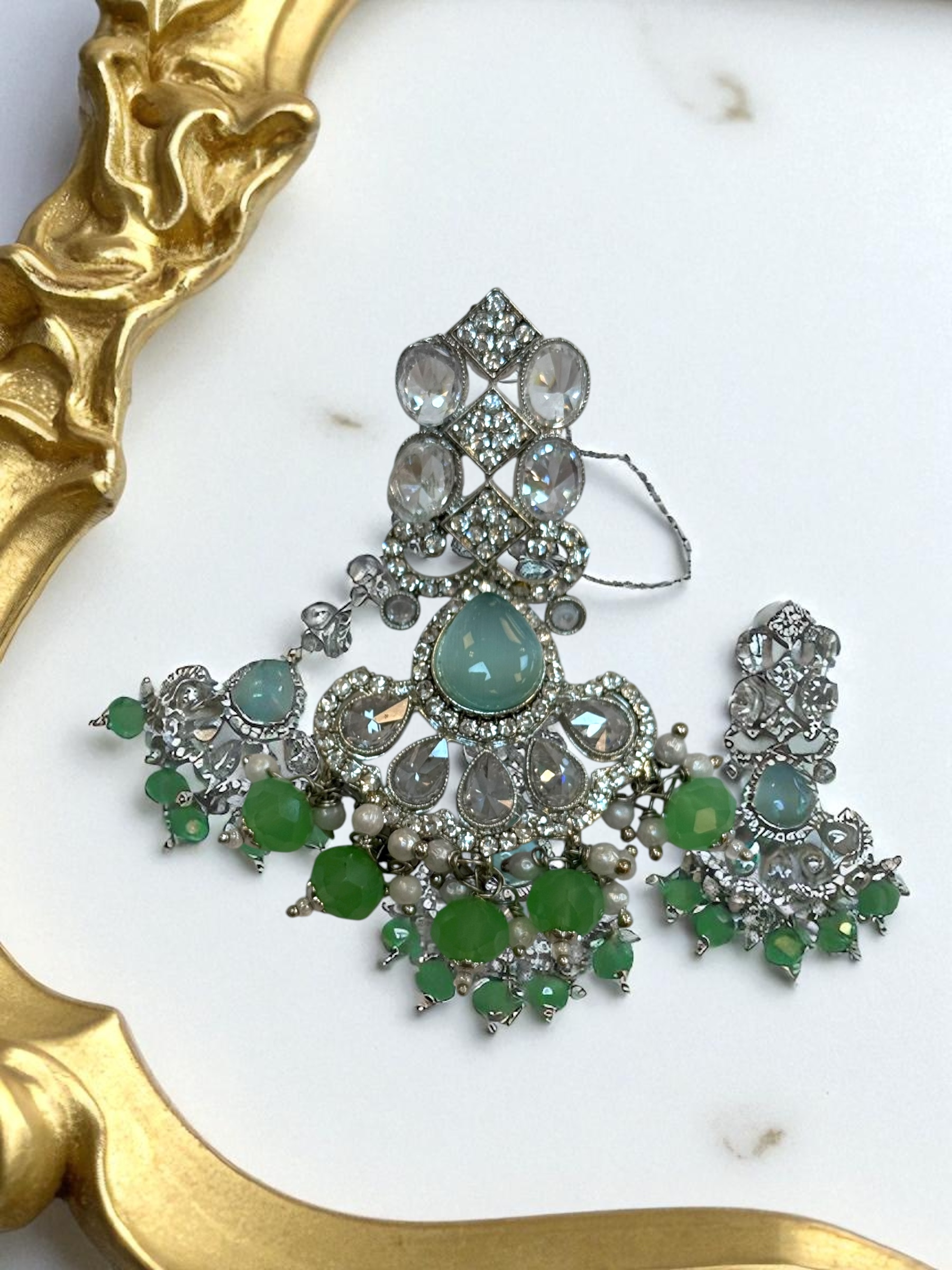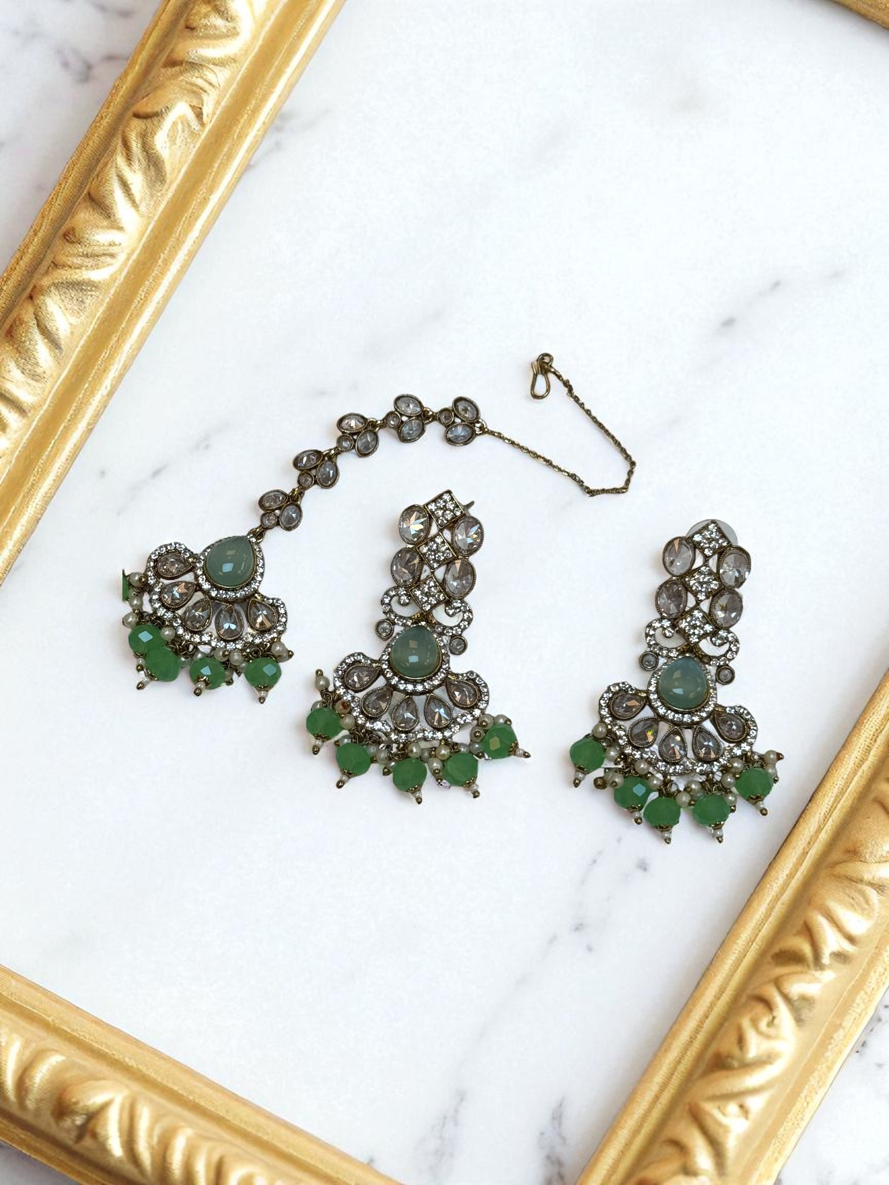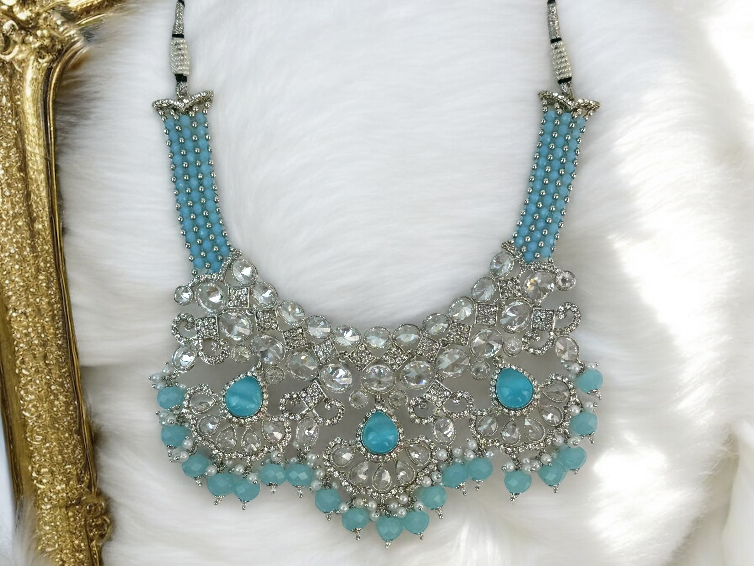 Add a touch of royal elegance to your look with this Mughal-inspired Zirconia Jewellery Set, featuring a necklace, earrings, and tikka. Perfect for brides, weddings, parties, and festive occasions.
