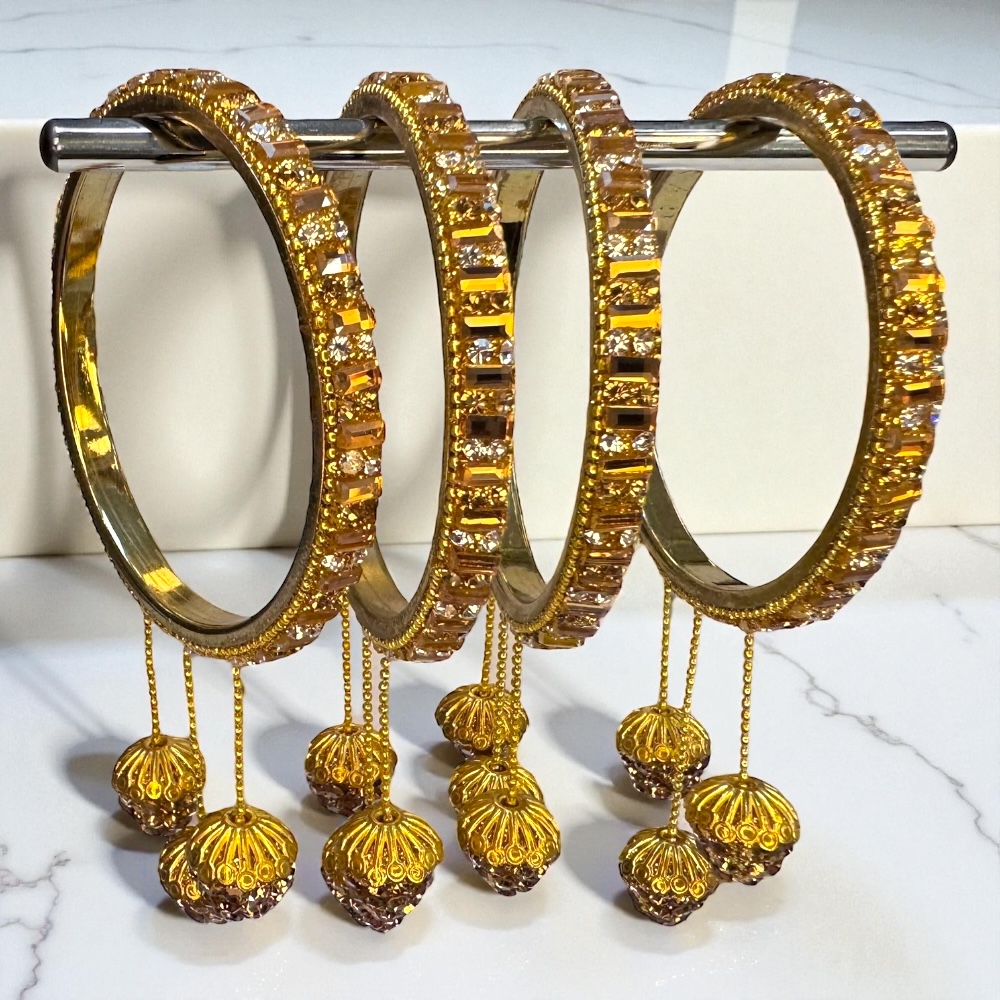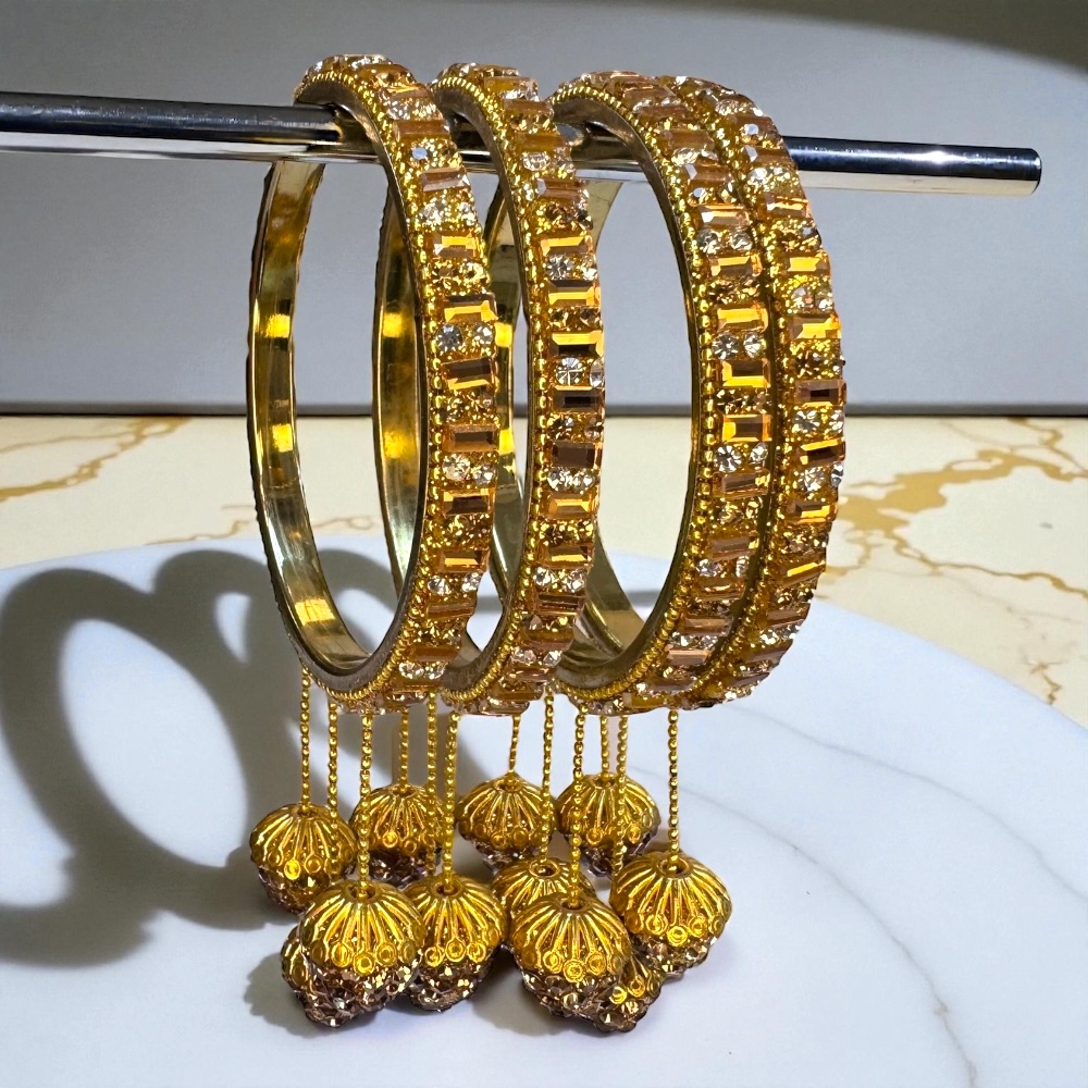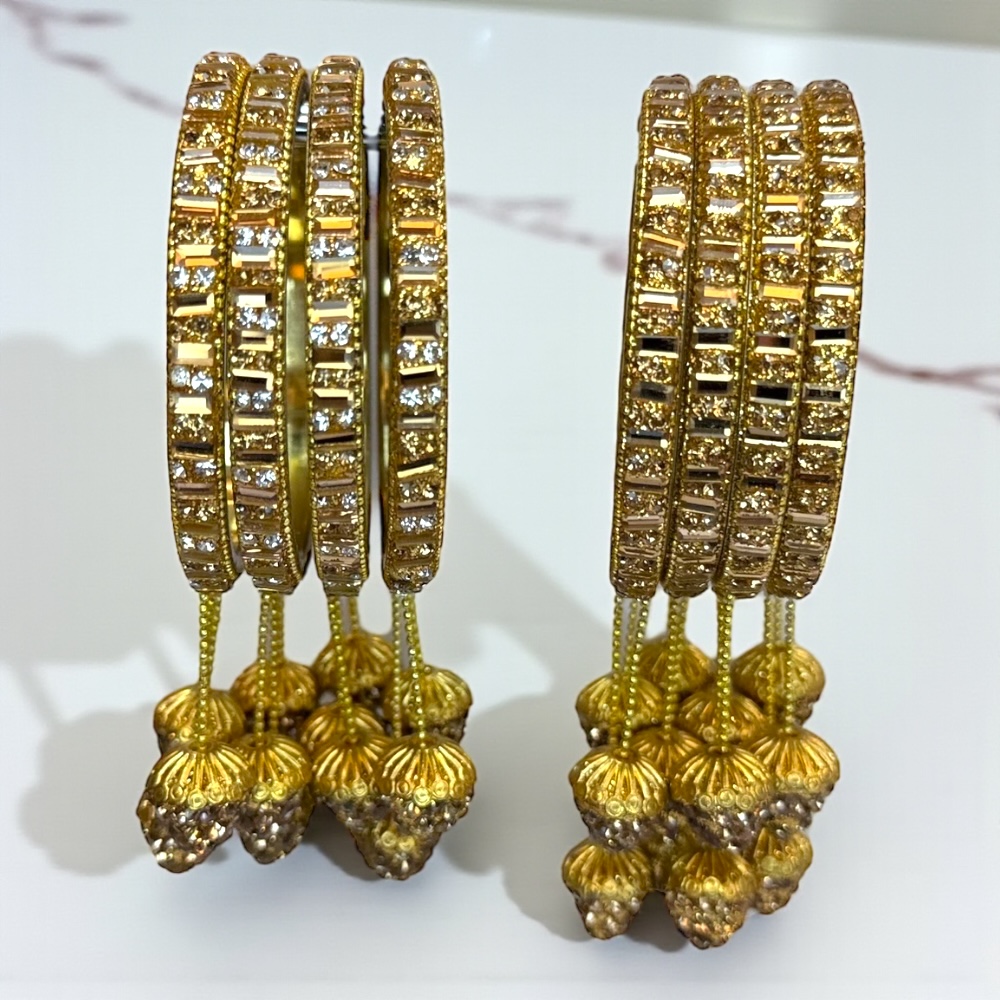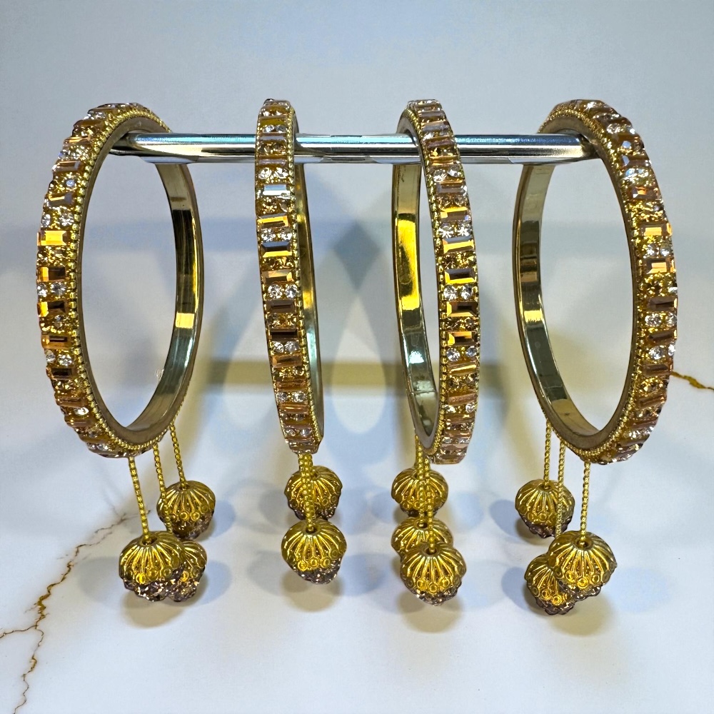 Beautiful set of 4 dangly droplet churi bangles, handmade with intricate detailing. These elegant bangles feature delicate hanging droplets that add charm and movement to your look — perfect for weddings, parties, and festive occasions.