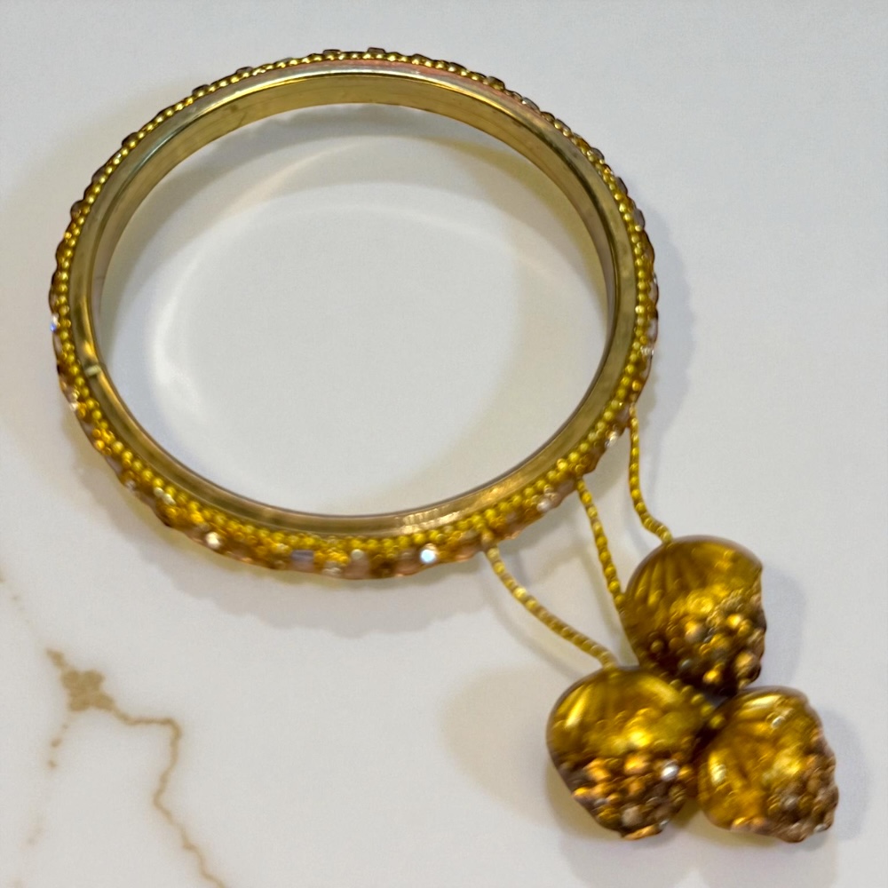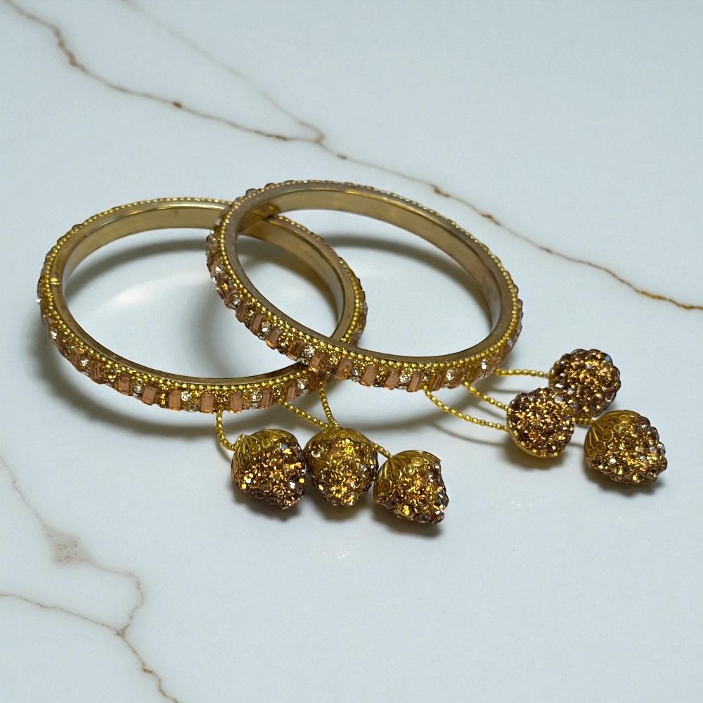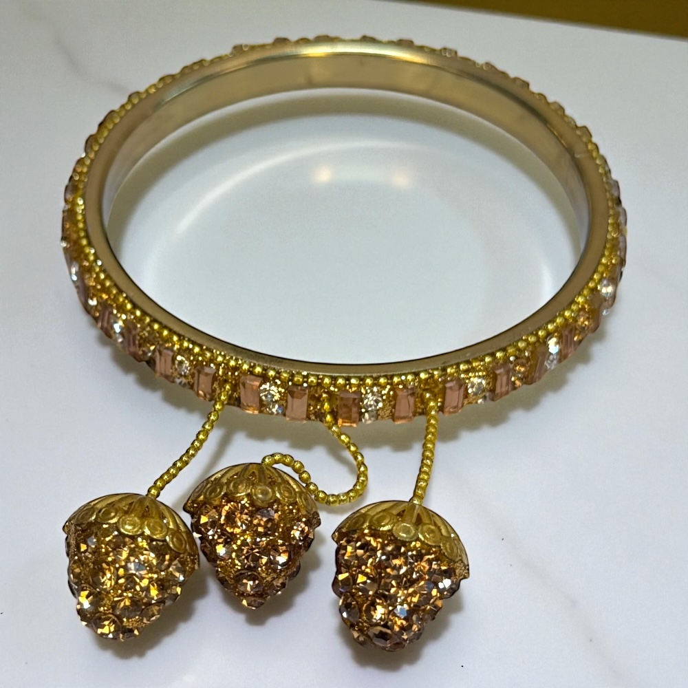 Inspired by classic jhumki bangles, this set combines ethnic charm with a modern touch. Whether worn individually or stacked together, these bangles make a perfect accessory for bridal wear, party outfits, or festive celebrations.