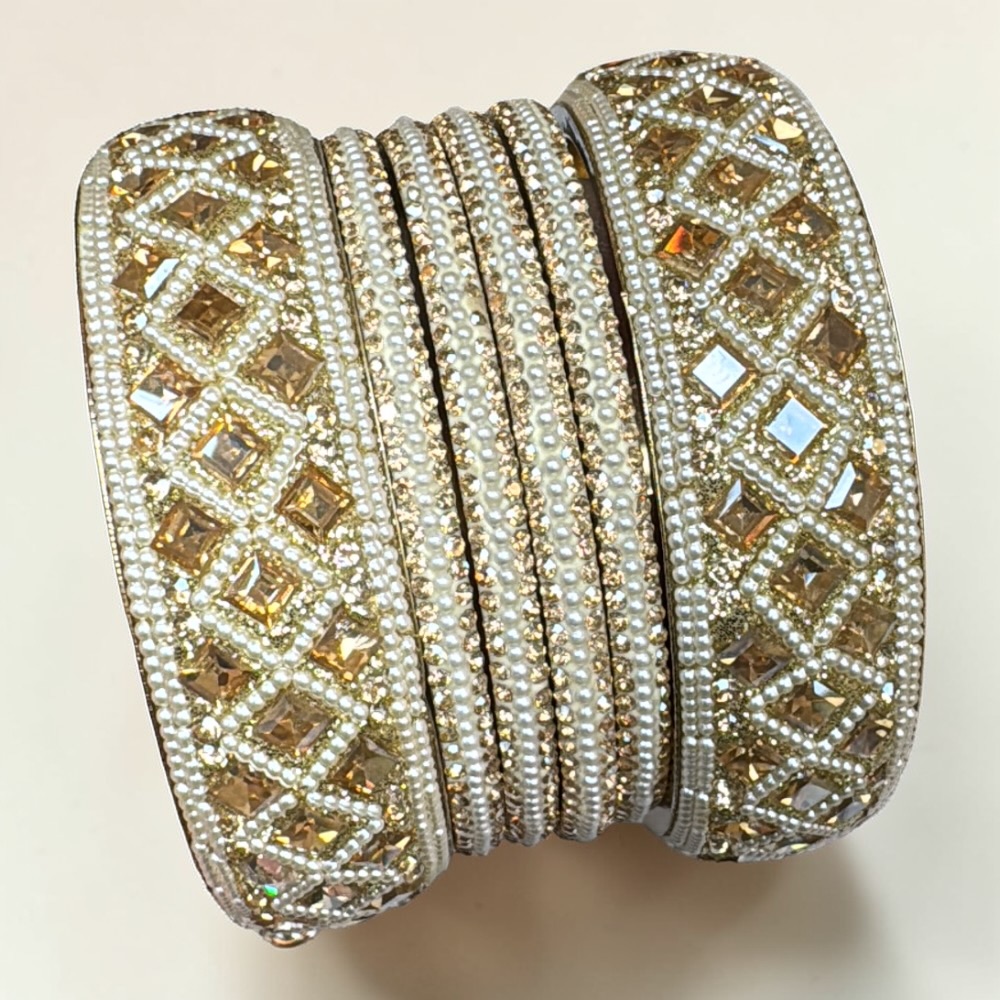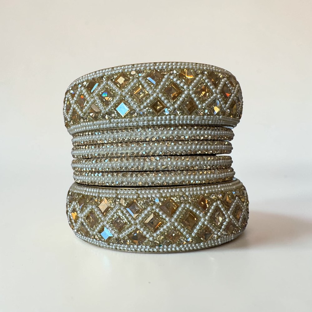 Elevate your ethnic jewellery collection with this exquisite Traditional Pearl Churi Set — a symbol of grace and cultural charm. These Indian & Pakistani‑style bangles are meticulously handcrafted with lightweight aluminium and adorned with lustrous pearls for a refined and stylish look. Whether you’re dressing up for a wedding, festival, or gifting to someone special, this churi set blends classic elegance with contemporary design.